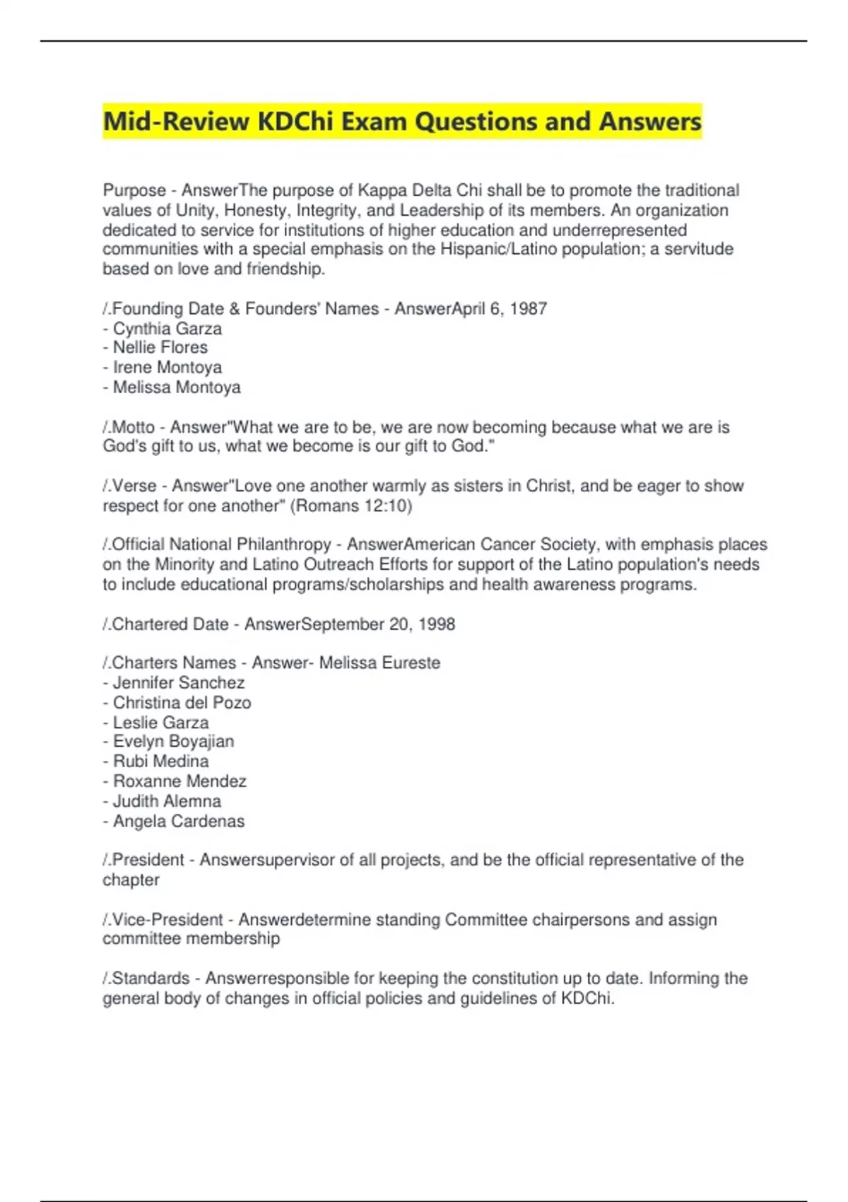 Exam (elaborations) Mid-Review KDChi Exam Questions and Answers 2 Exam (elaborations) kdchi test 1 with correct answers 3 Exam (elaborations) KDCHI Quiz 4 with correct Answers 4 Exam (elaborations) KDChi Mid-Review Exam Questions and Answers 5 Exam (elaborations) KDChi final exam review questions and answers 6 Exam (elaborations) KDCHI Final E