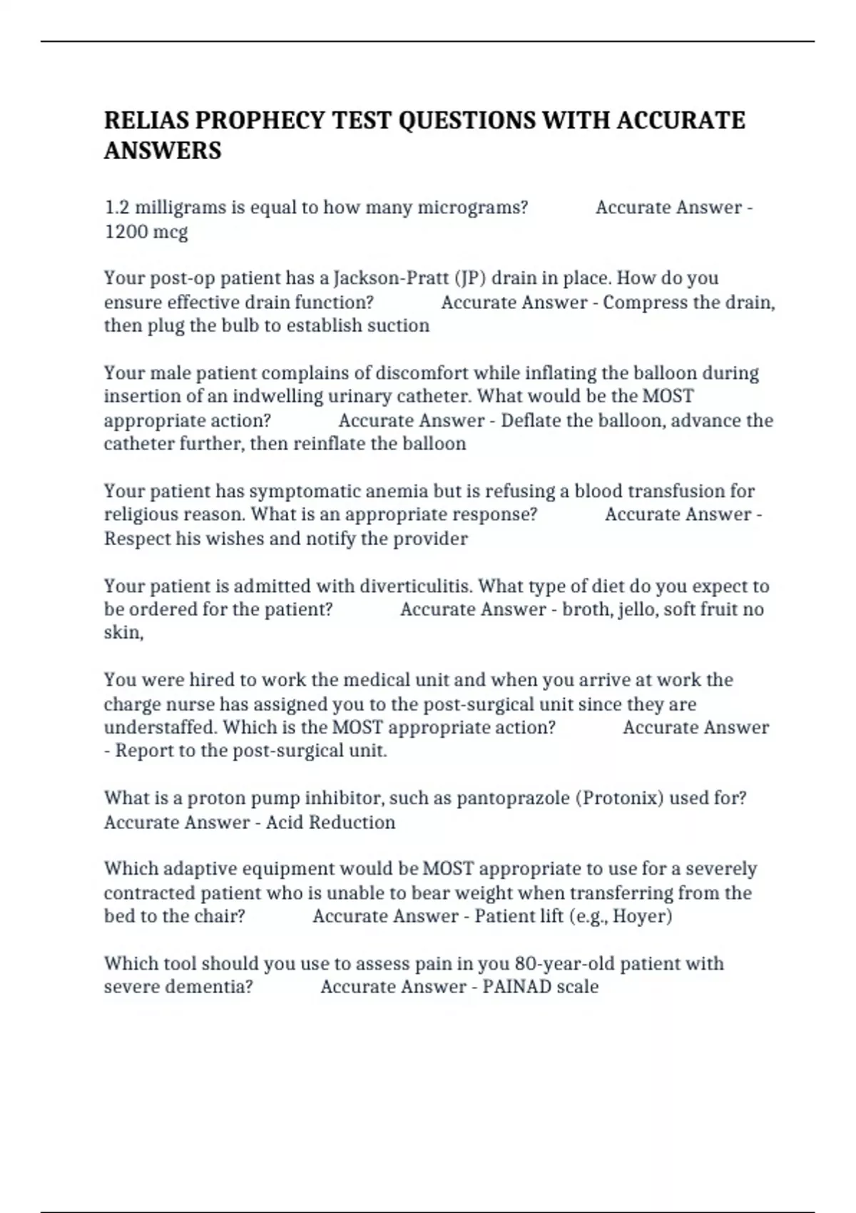 BUNDLE FOR RELIAS RN EXAMS