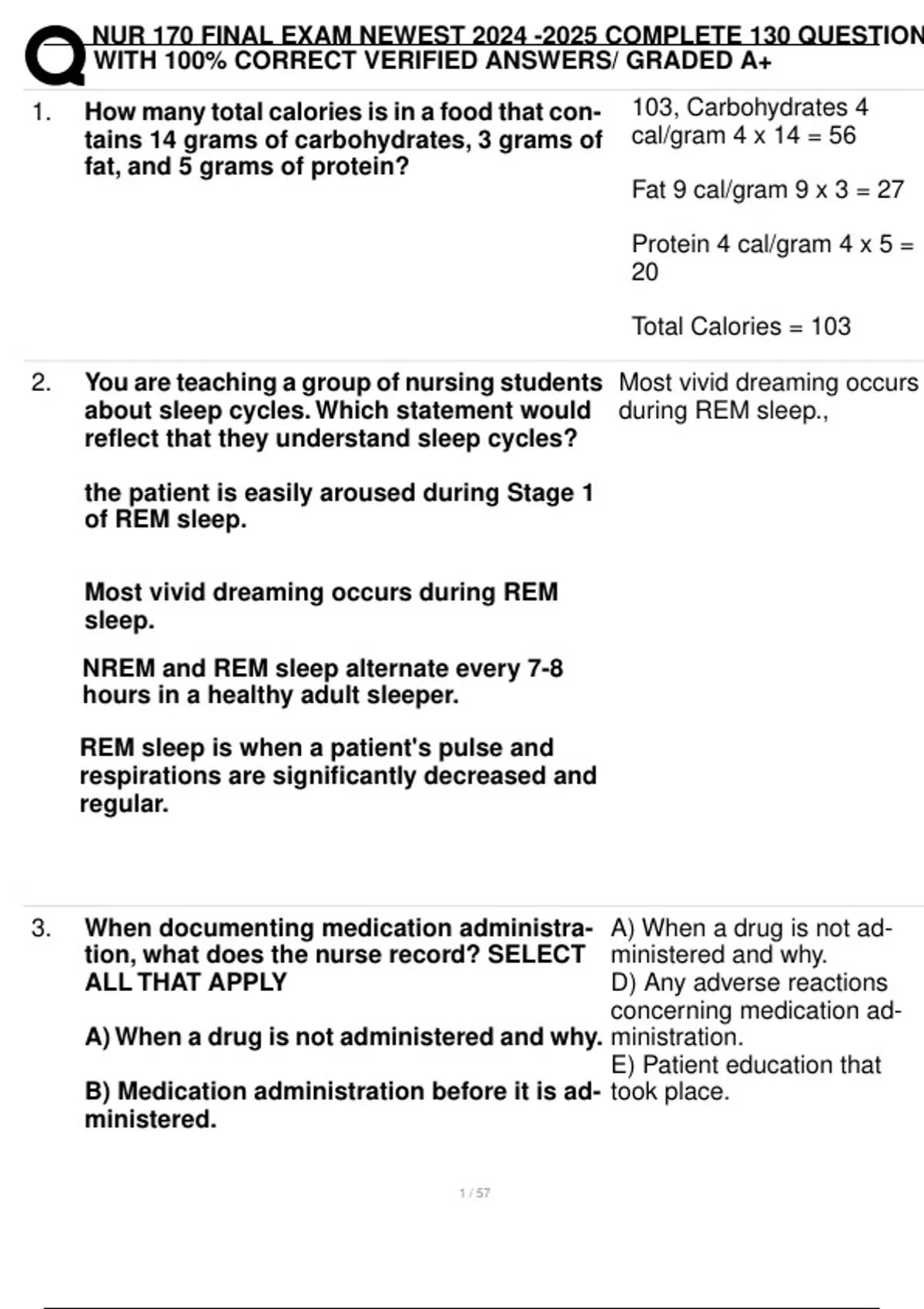 NUR 170 FINAL EXAM NEWEST COMPLETE 130 QUESTIONS WITH 100% CORRECT VERIFIED ANSWERS/ GRADED A+