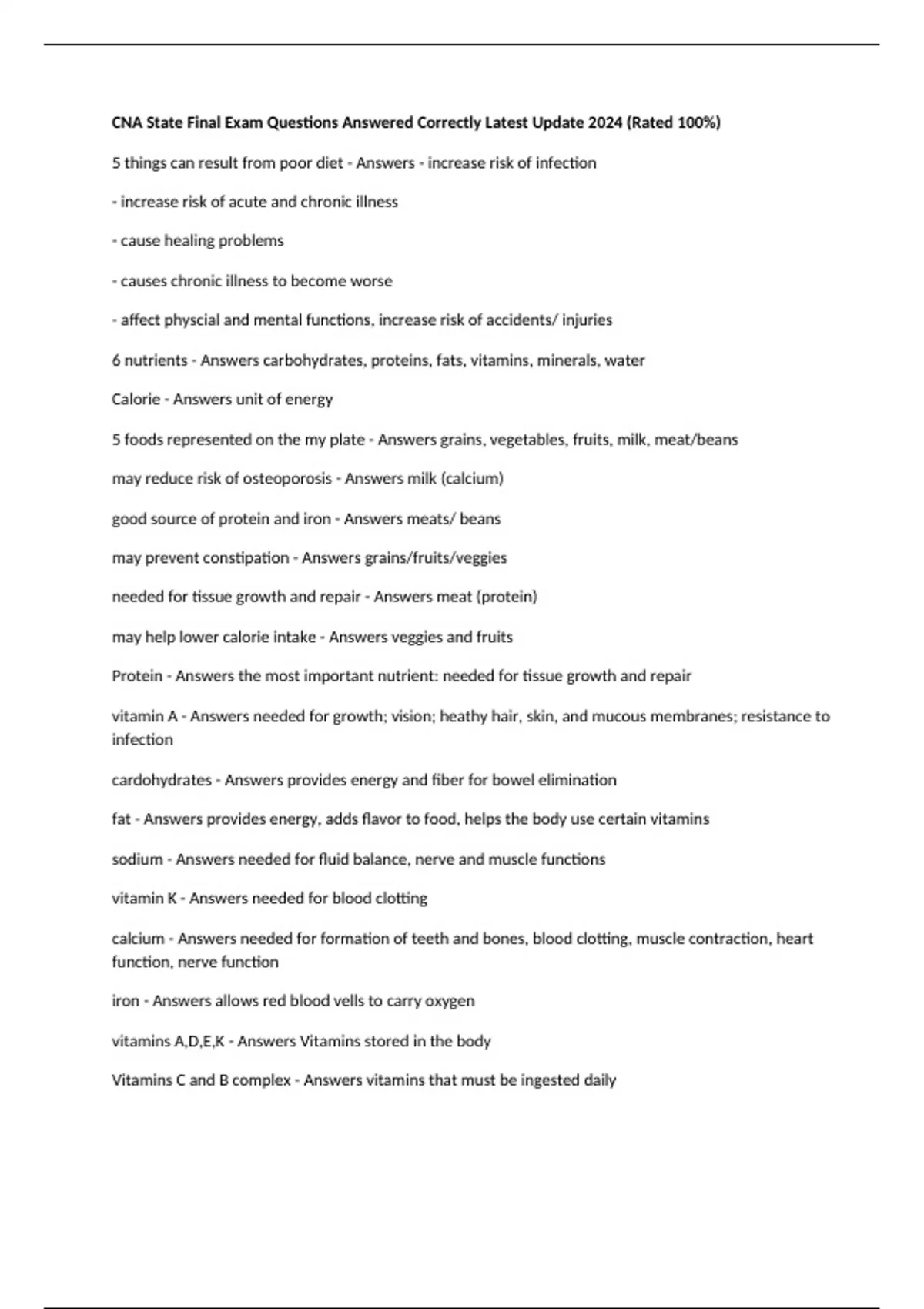 CNA State Final Exam Questions Answered Correctly Latest Update 2024 (Rated 100%)