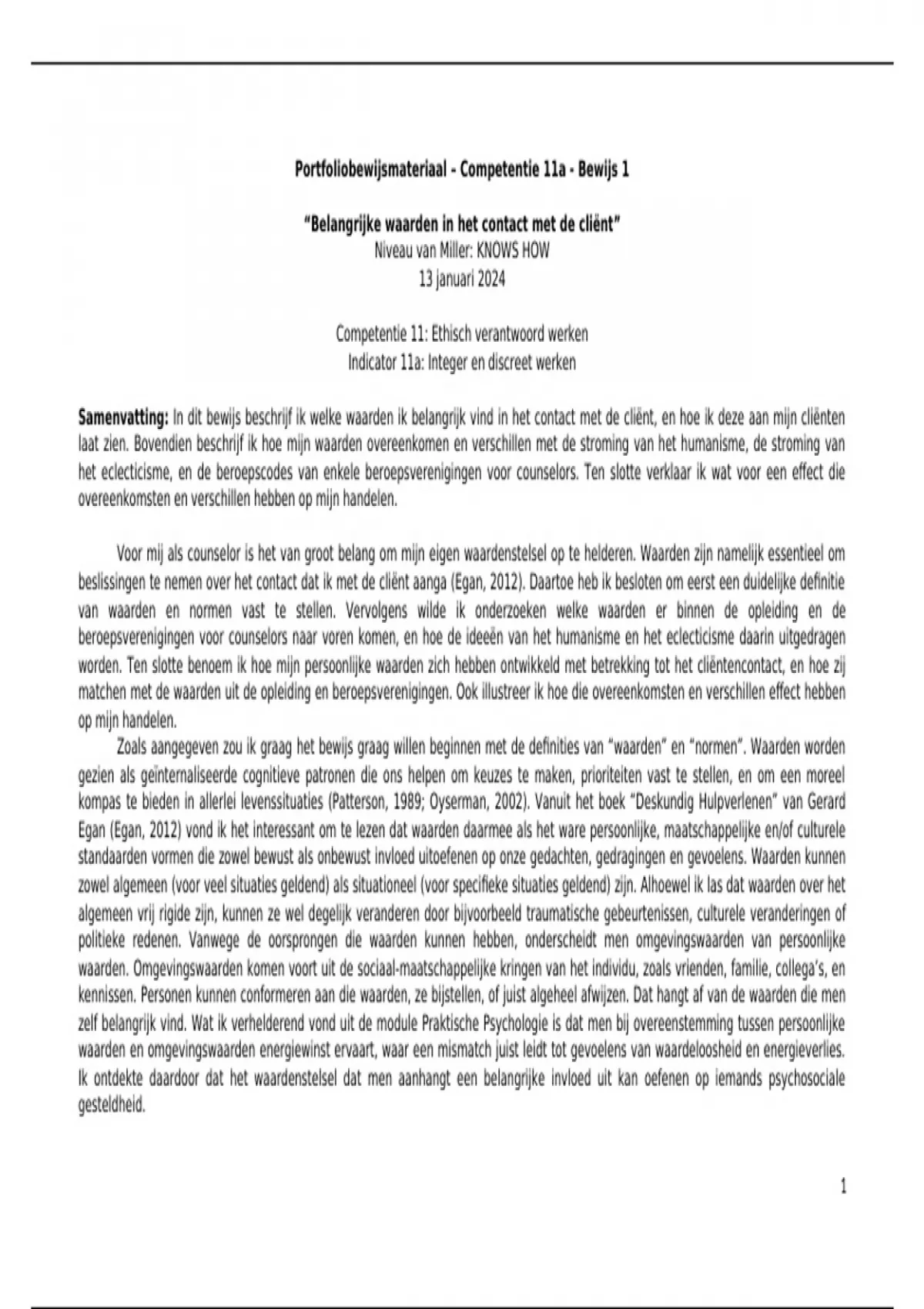 Portfolio - Competentie 11a - Bewijs 1 'Belangrijke waarden in het contact met de cliënt'