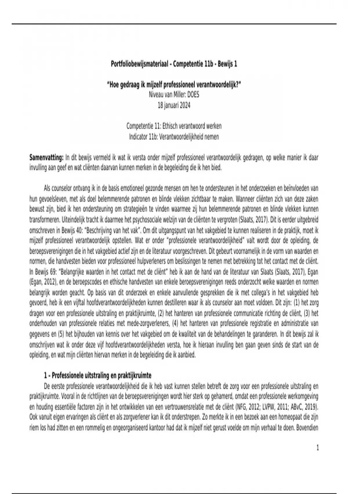 Portfolio - Competentie 11b - Bewijs 1 'Hoe gedraag ik mijzelf professioneel verantwoordelijk?'
