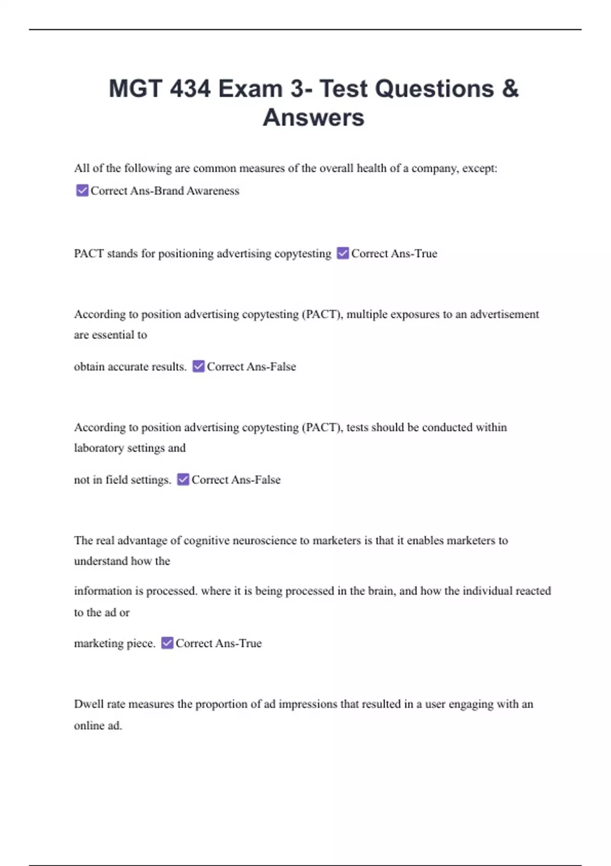 COMPLETE PACKAGE-::MGT 434 EXAMS WITH COMPLETE SOLUTIONS