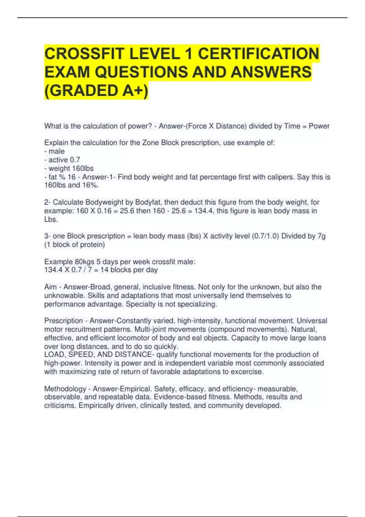CROSSFIT LEVEL 1 CERTIFICATE COMBINED SET EXAM QUESTIONS WITH ALL CORRECT ANSWERS 2 Exam (elaborations) CROSSFIT LEVEL 1 CERTIFICATE EXAM REPORTED QUESTIONS WITH CORRECT ANSWERS 3 Exam (elaborations) CROSSFIT LEVEL 1 CERTIFICATE REAL ESTATE EXAM QUESTIONS WITH COMPLETE SOLUTONS 4 Exam (elaborations) CROSSFIT LEVEL 1 CERTIFICATION (180 QUESTIONS)