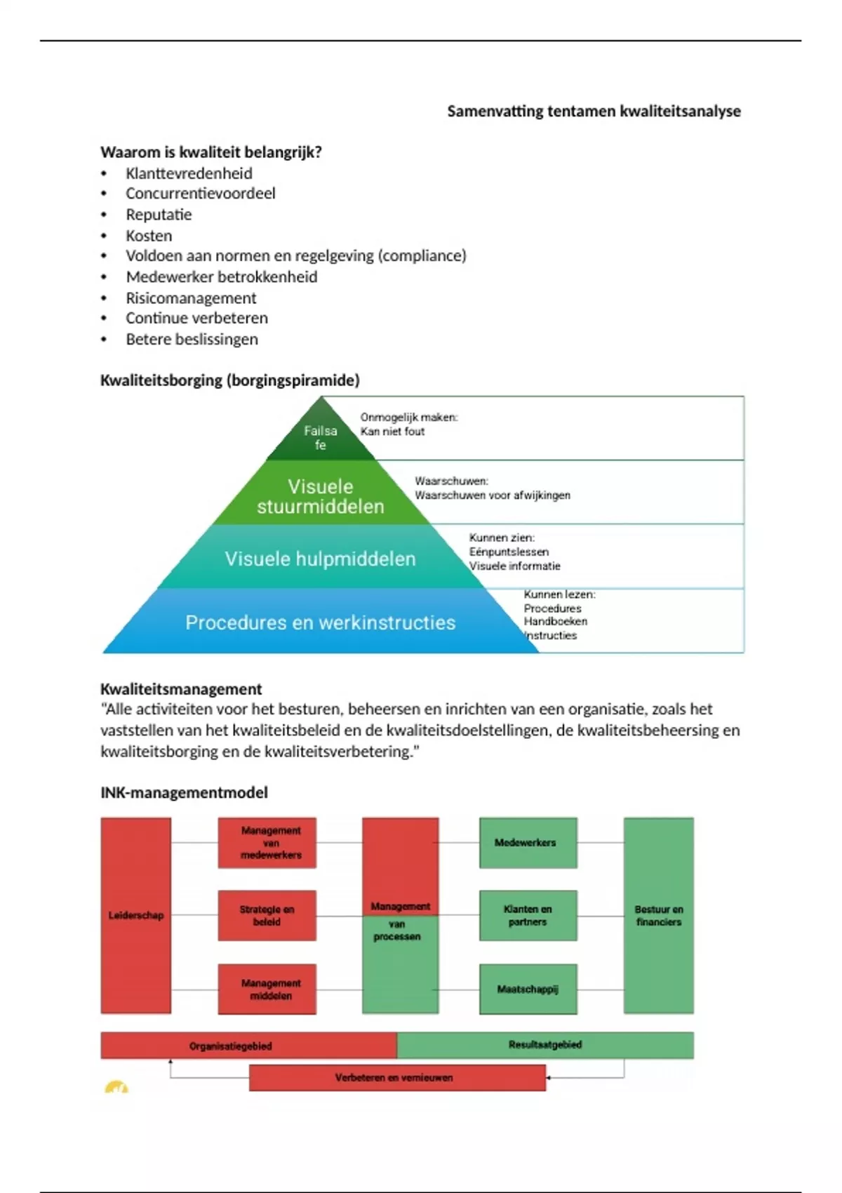 Samenvatting Kwaliteitsanalyse (zelf een 8 gehaald hiermee)