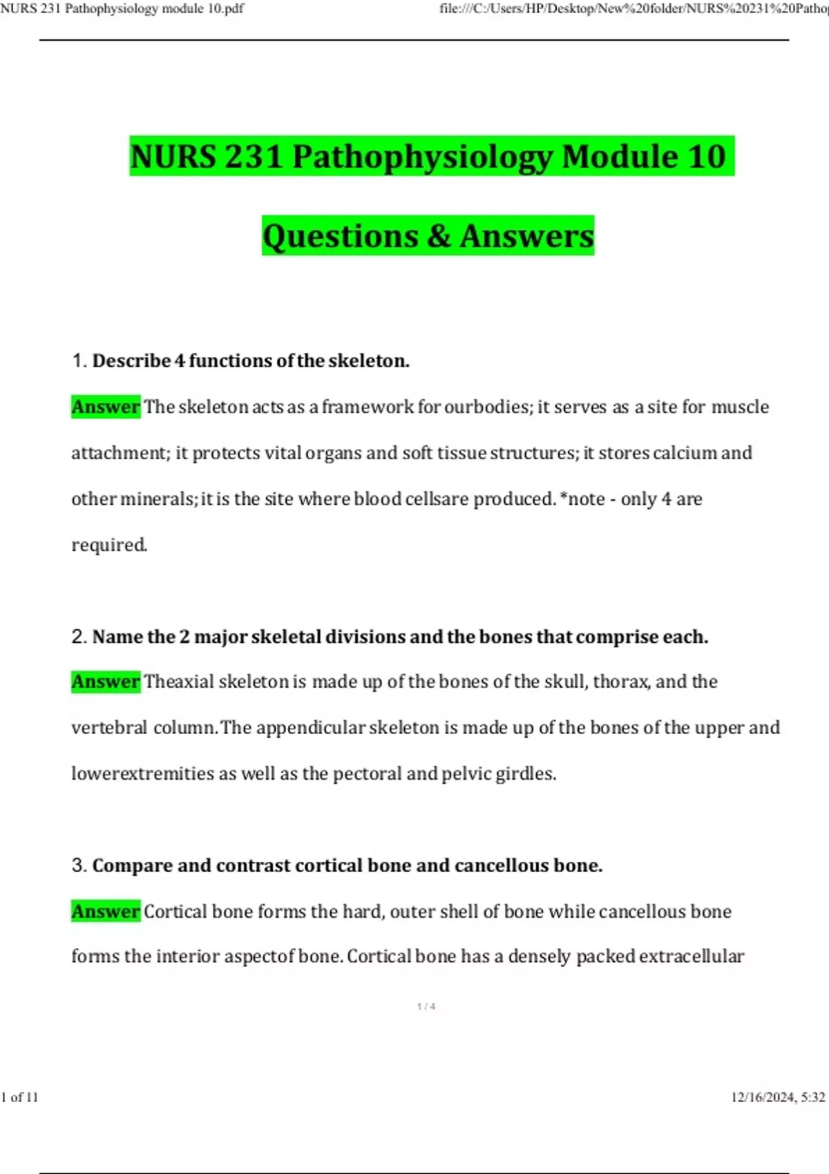 NURS 231 Pathophysiology Bundled Exams 2025 NURS 231 Pathophysiology Final & Midterm Exam / NURS 231 Pathophysiology Module 1-10 Exam Latest Questions and Answers (2025 / 2026) (Verified Answers) Portage