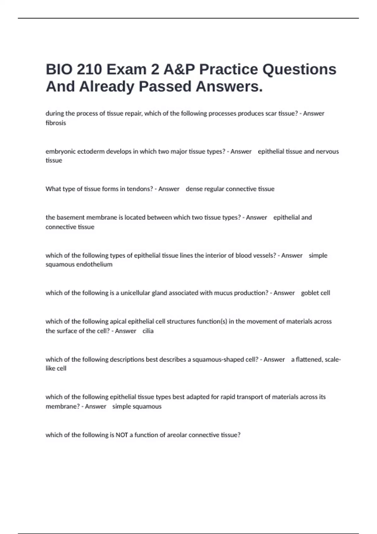 BIOD 210 EXAM PACKAGE DEAL WITH COMPLETE SOLUTIONS!!
