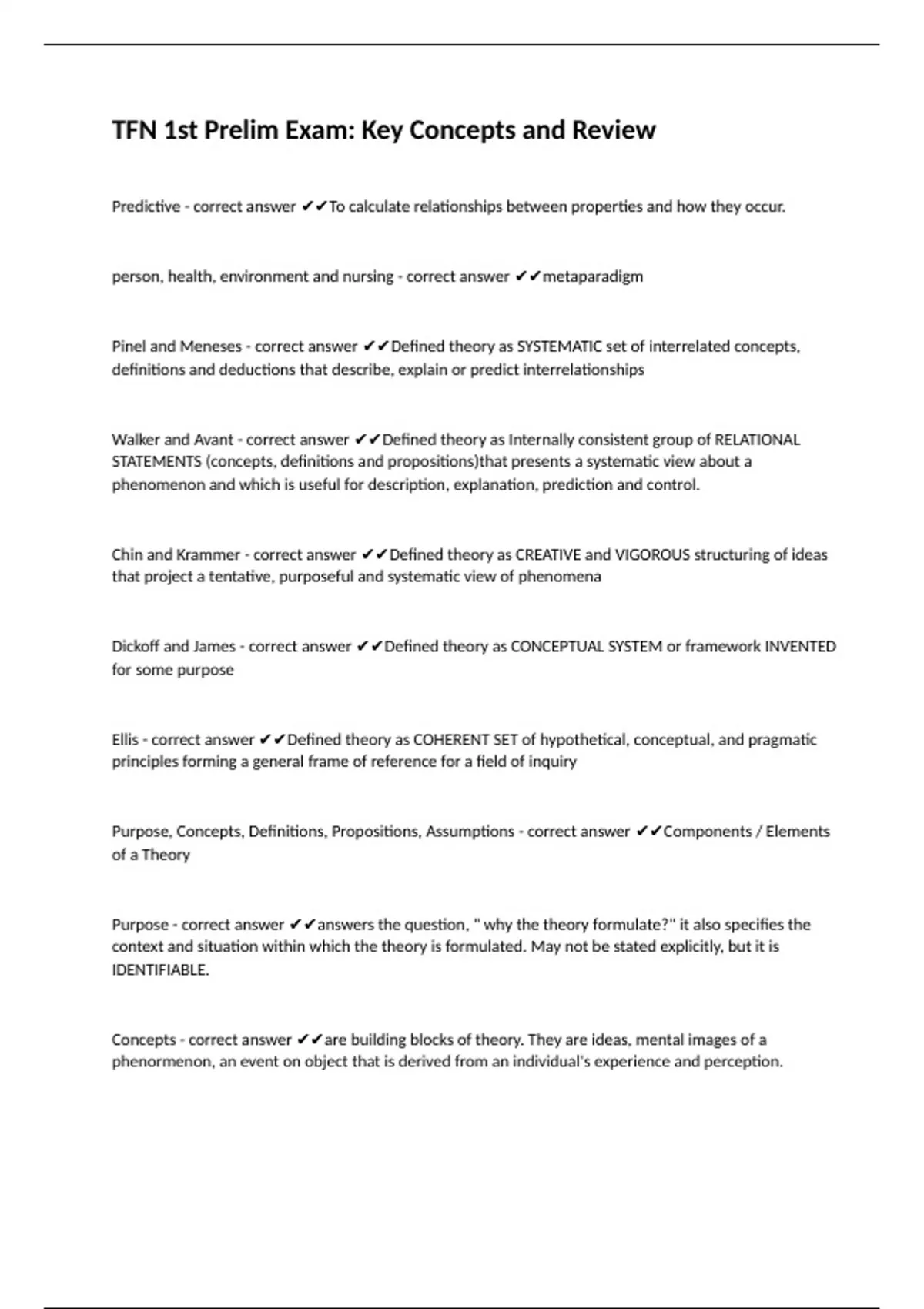 1 Exam (elaborations) The Evolution of Nursing: TFN Overview 2 Exam (elaborations) TFN Midterms: Focus on Nursing Theorists 3 Exam (elaborations) NCM 100 - TFN: Nursing Theorists and Their Theories 4 Exam (elaborations) TFN Comprehensive Exam: Rationalization