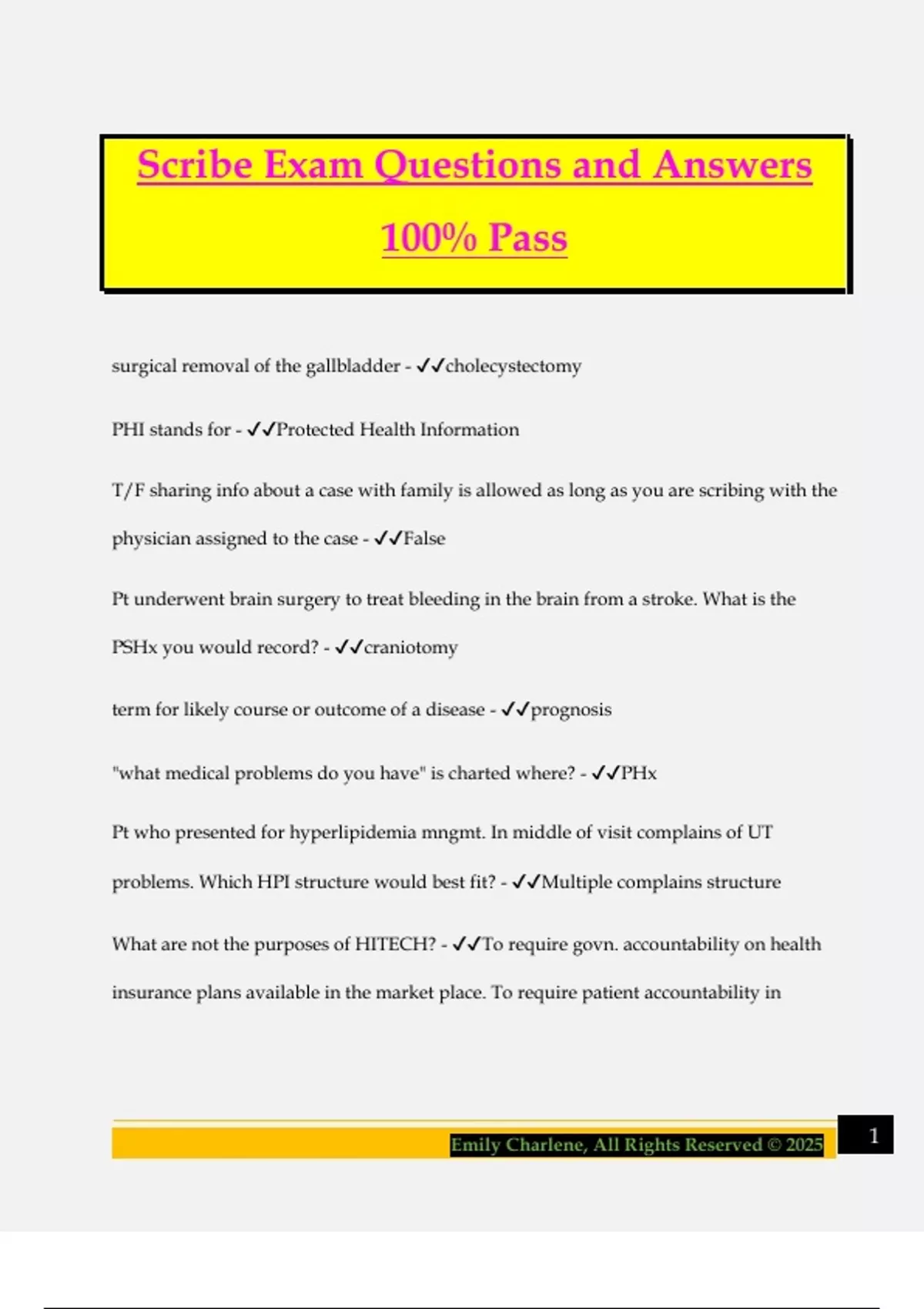 Scribe Bundled Exams Questions and Answers 100% Pass Rate | Reviewed