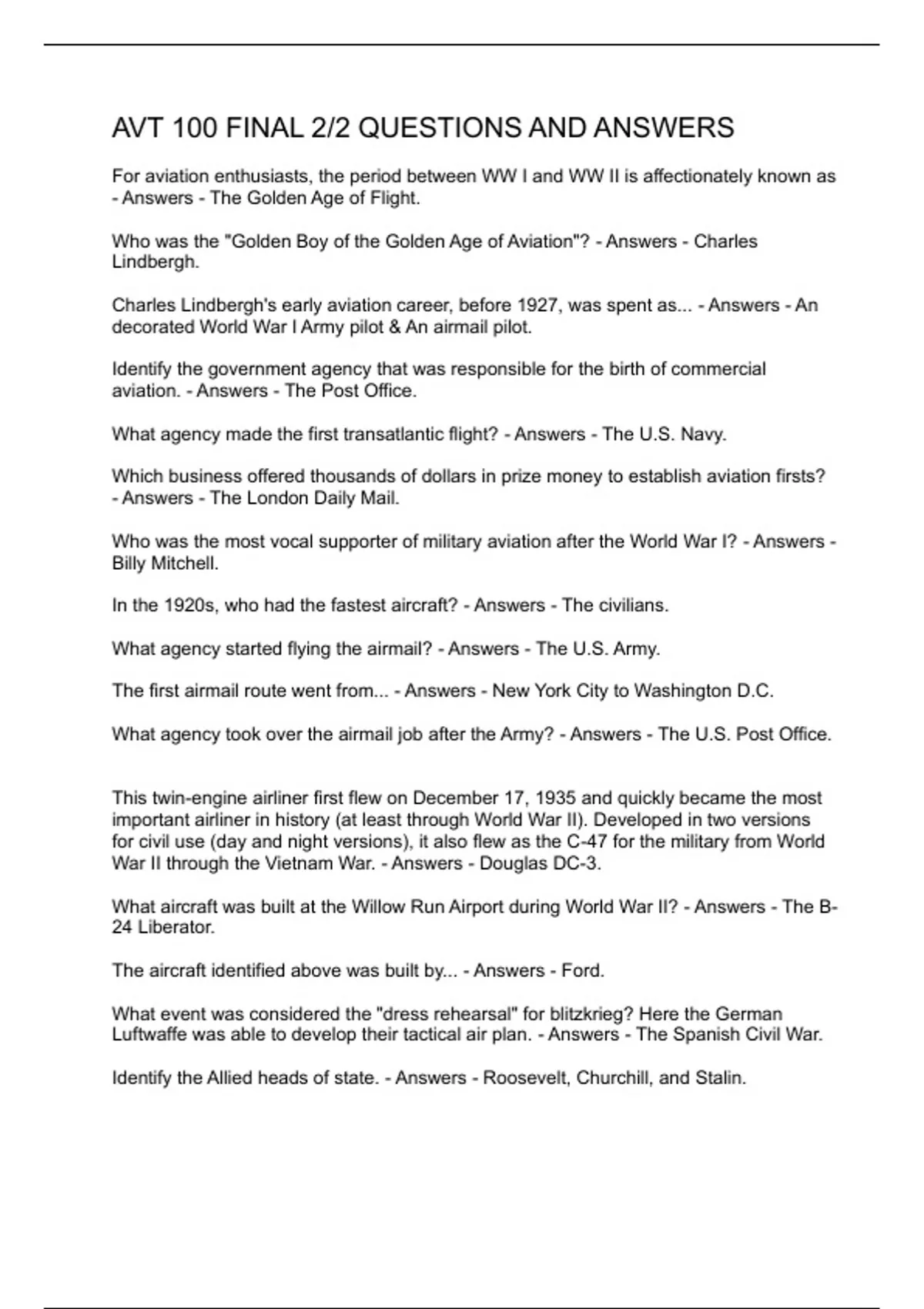AVT-100 EXAM 2 QUESTIONS AND ANSWERS 2 Exam (elaborations) AVT-100 EXAM 2 PT.2QUESTIONS AND ANSWERS 3 Exam (elaborations) AVT-100 CHAPTER 4 QUESTIONS AND ANSWERS 4 Exam (elaborations) AVT 100 FINAL 2-2 QUESTIONS AND ANSWERS 5 Exam (elaborations) AVT 100 FINAL EXAM QUESTIONS AND ANSWERS 6 Exam (elaborations) AVT 100 FINAL EXAM QUESTIONS AND ANS