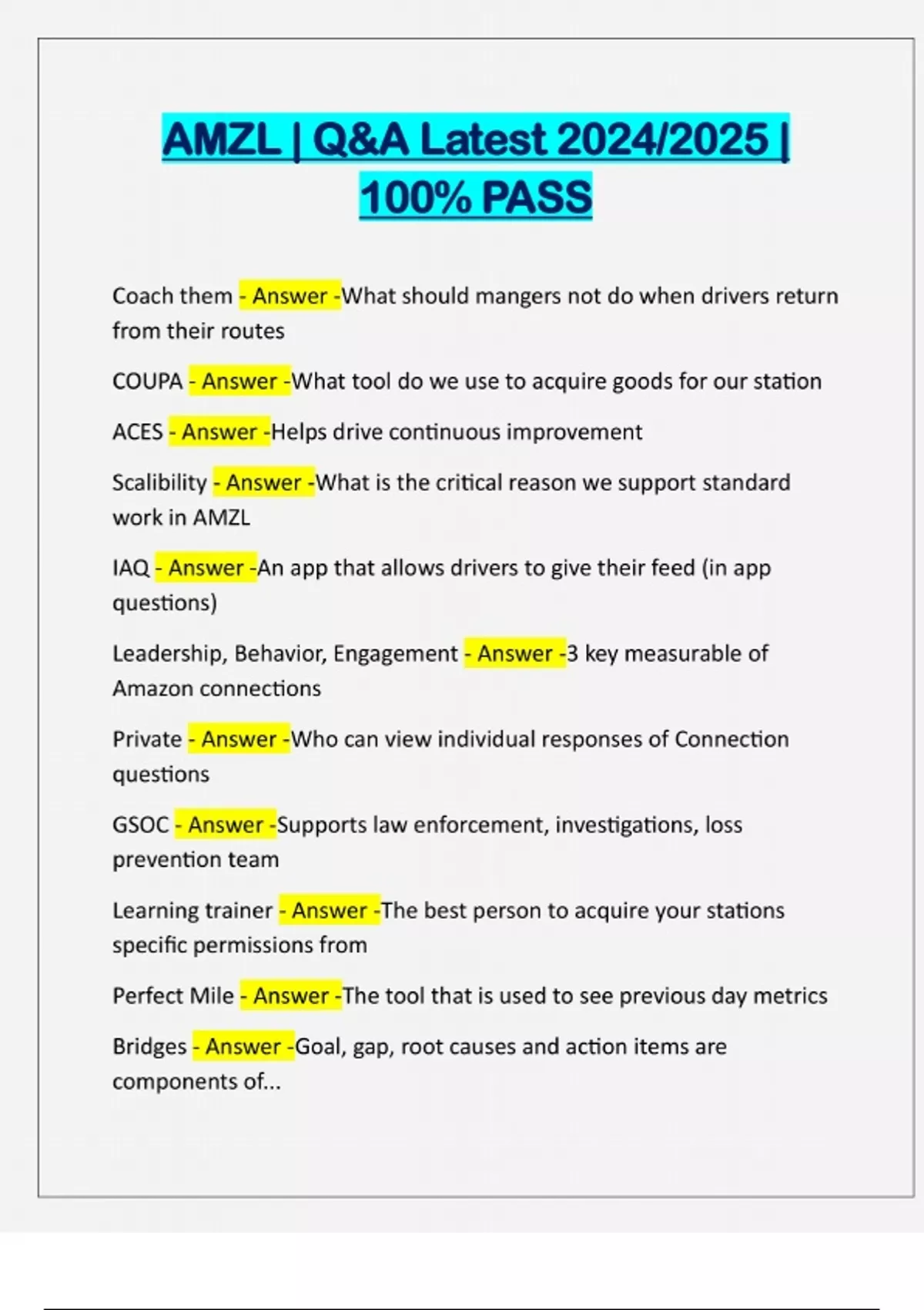 AMZL - AMAZON DRIVER TRAINING PACKAGE DEAL EXAMS:::: Q&A LATEST 2024/2025