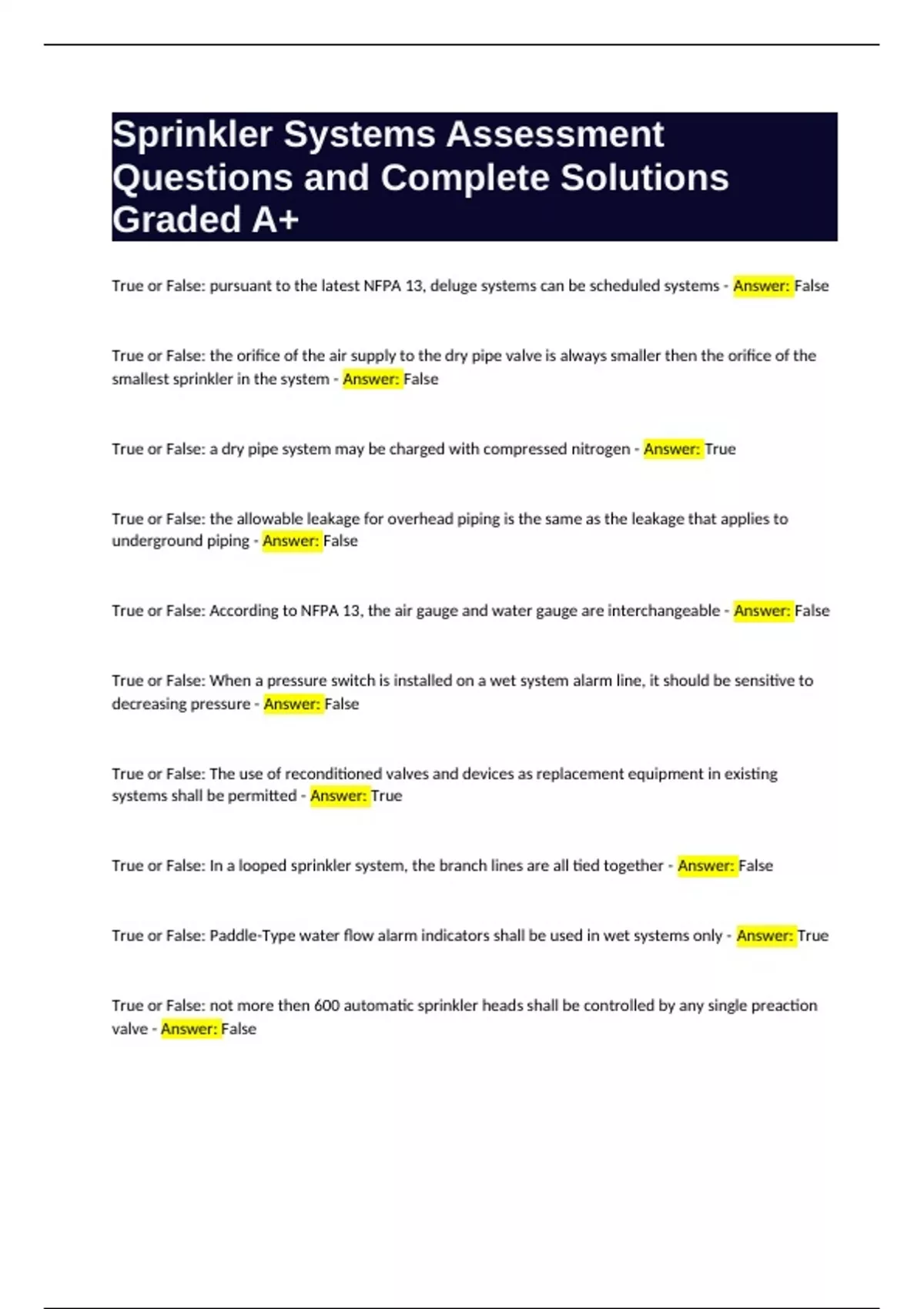 Sprinkler Chart Questions (S12) Questions and Complete Solutions Graded A Bundle Compilation