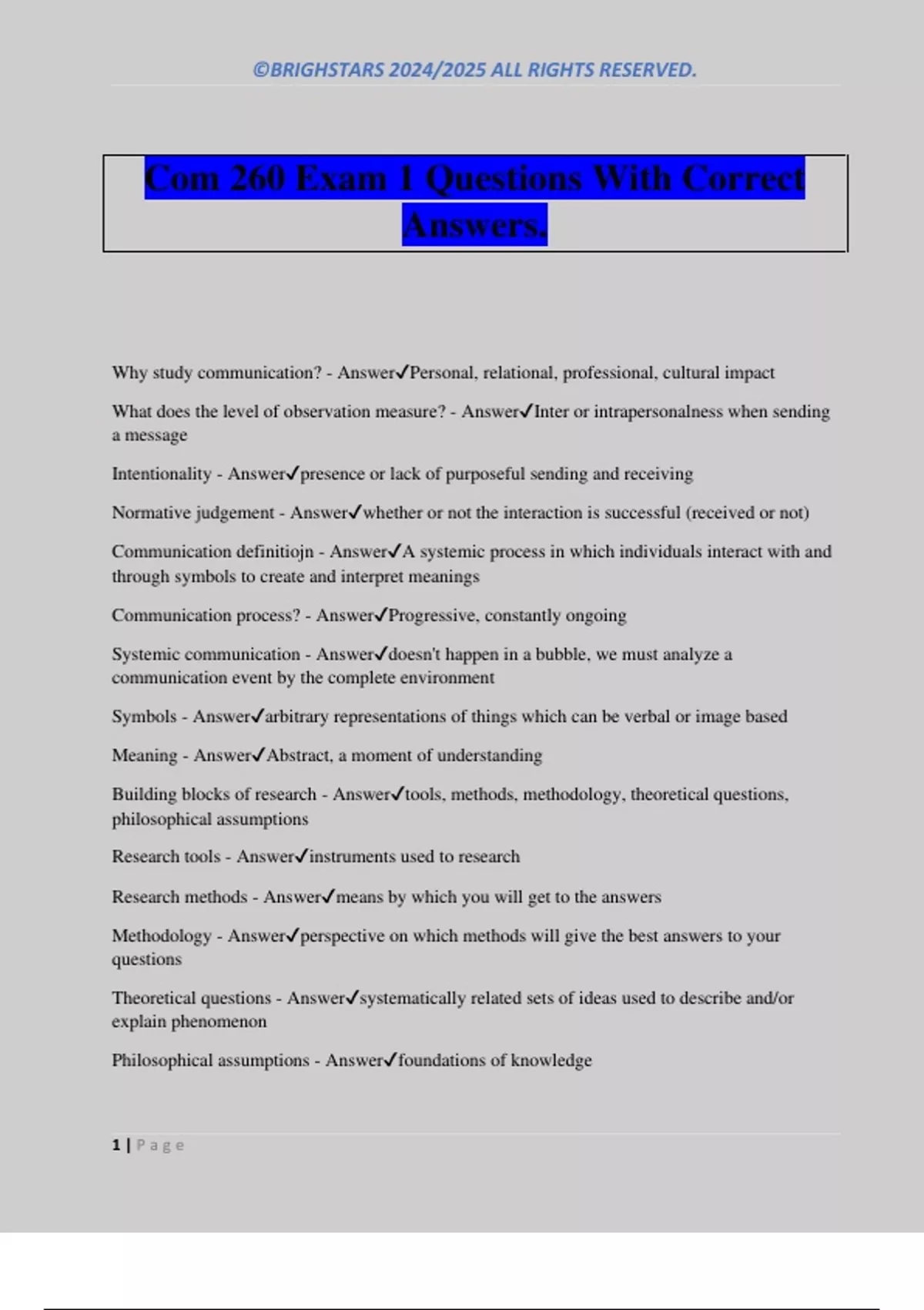 Com 260 Exam 3 Questions With Correct Answers 2025