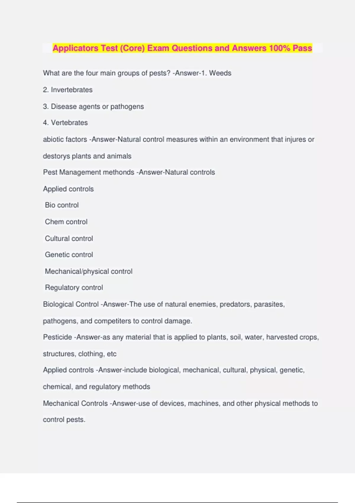 Pesticide Applicator Bundled Exams Questions and Answers 100% Pass Guaranteed Reviewed 2025
