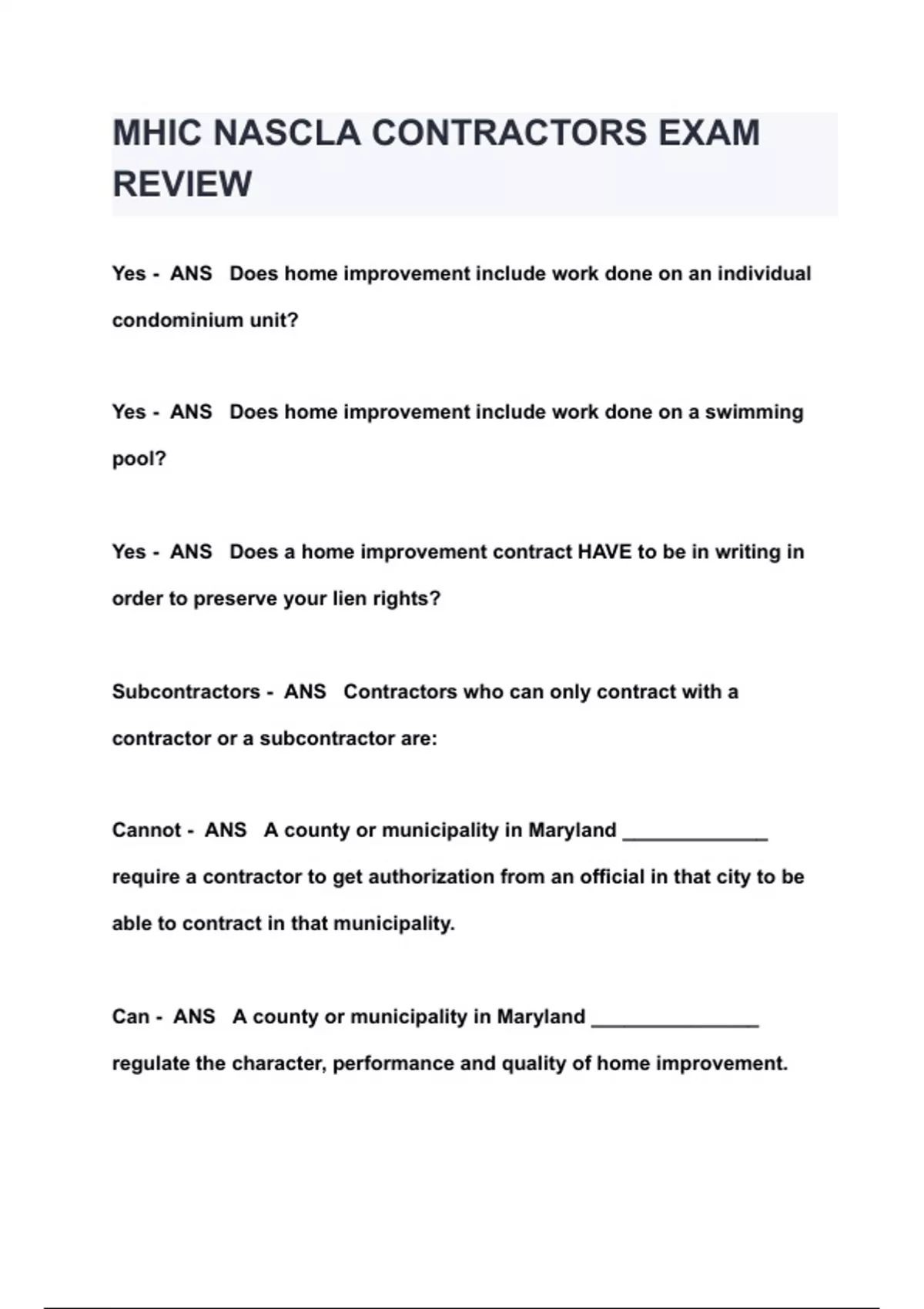 Maryland Home Improvement FULL BUNDLE|| ACTUAL EXAMS|| 2025 ( A GRADED 100% VERIFIED)