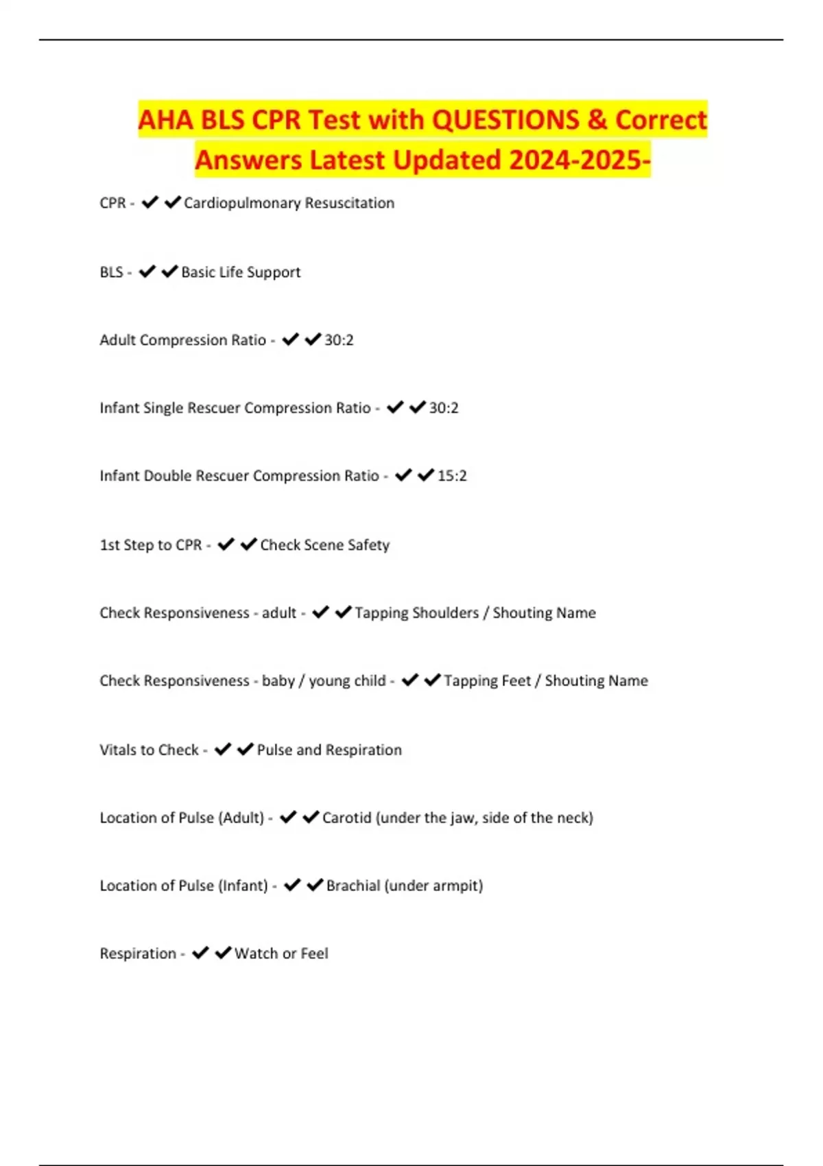 BLS CPR ACTUAL EXAM QUESTIONS WITH ANSWERS VERIFIED 100% CORRECT