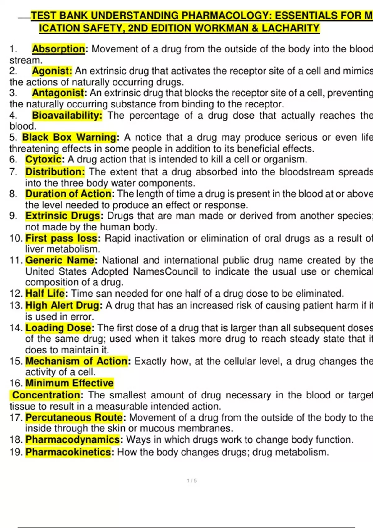 TEST BANK UNDERSTANDING PHARMACOLOGY ESSENTIALS FOR MEDICATION SAFETY, 2ND EDITION WORKMAN & LACHARITY