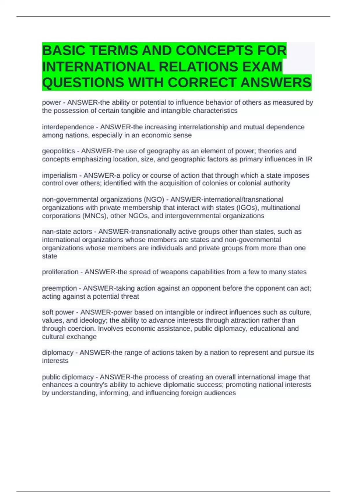 INTERNATIONAL RELATIONS EXAM TEST GUIDE QUESTIONS AND ANSWERS