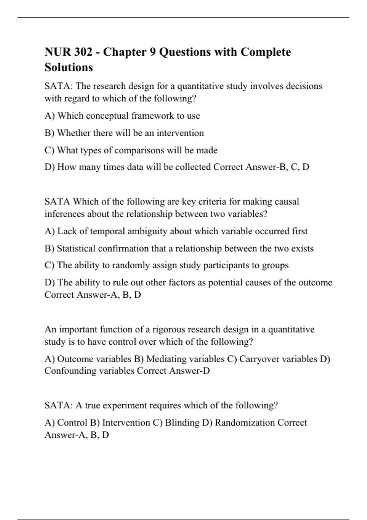 NUR 302 - Chapter 9 Questions with Complete Solutions