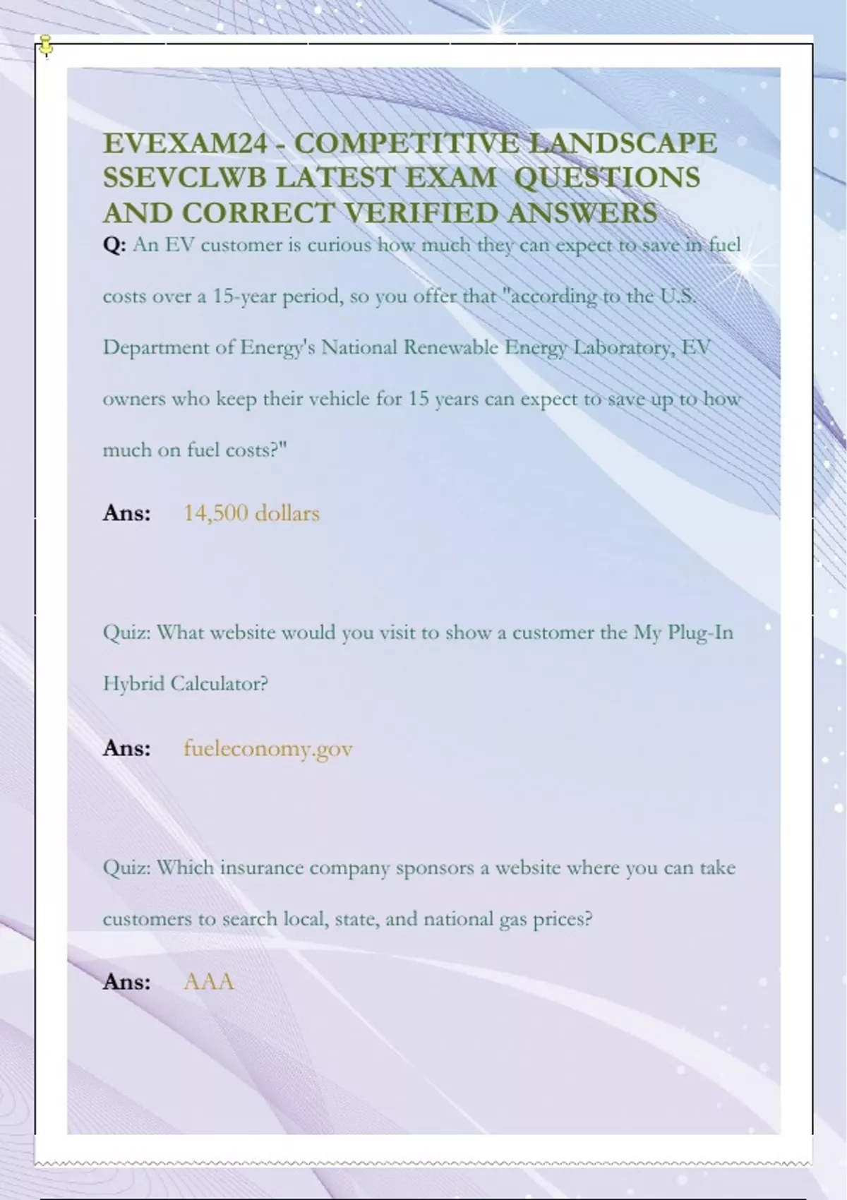 EVEXAM24 - 2024 EV EXPERT EXAM LATEST EXAM QUESTIONS AND CORRECT VERIFIED ANSWERS