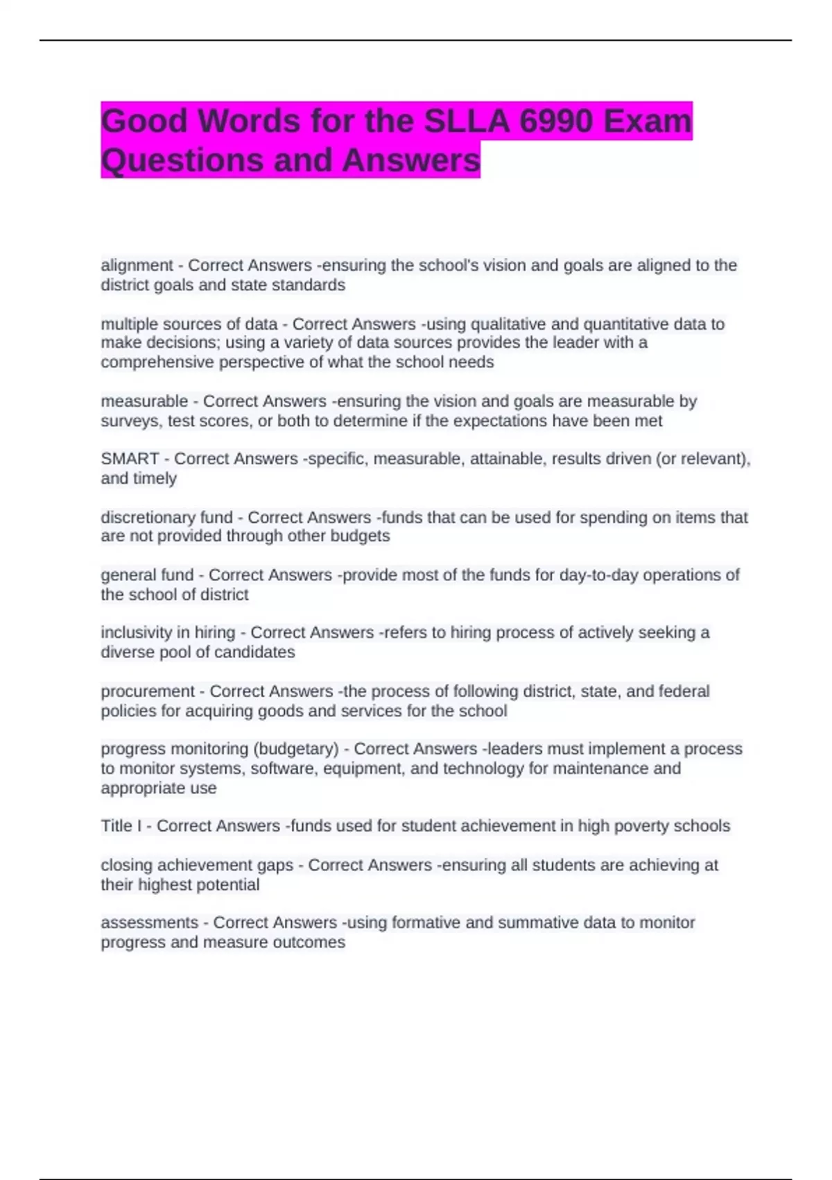 SLLA 6990 Exam Bundle