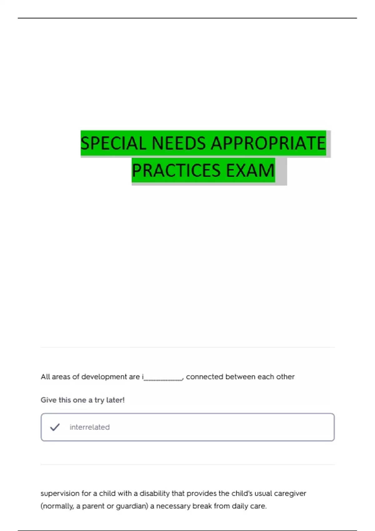 DCF CERTIFICATION- CHILDREN WITH DISABILITIES QUESTIONS WITH 100% CORRECT ANSWERS