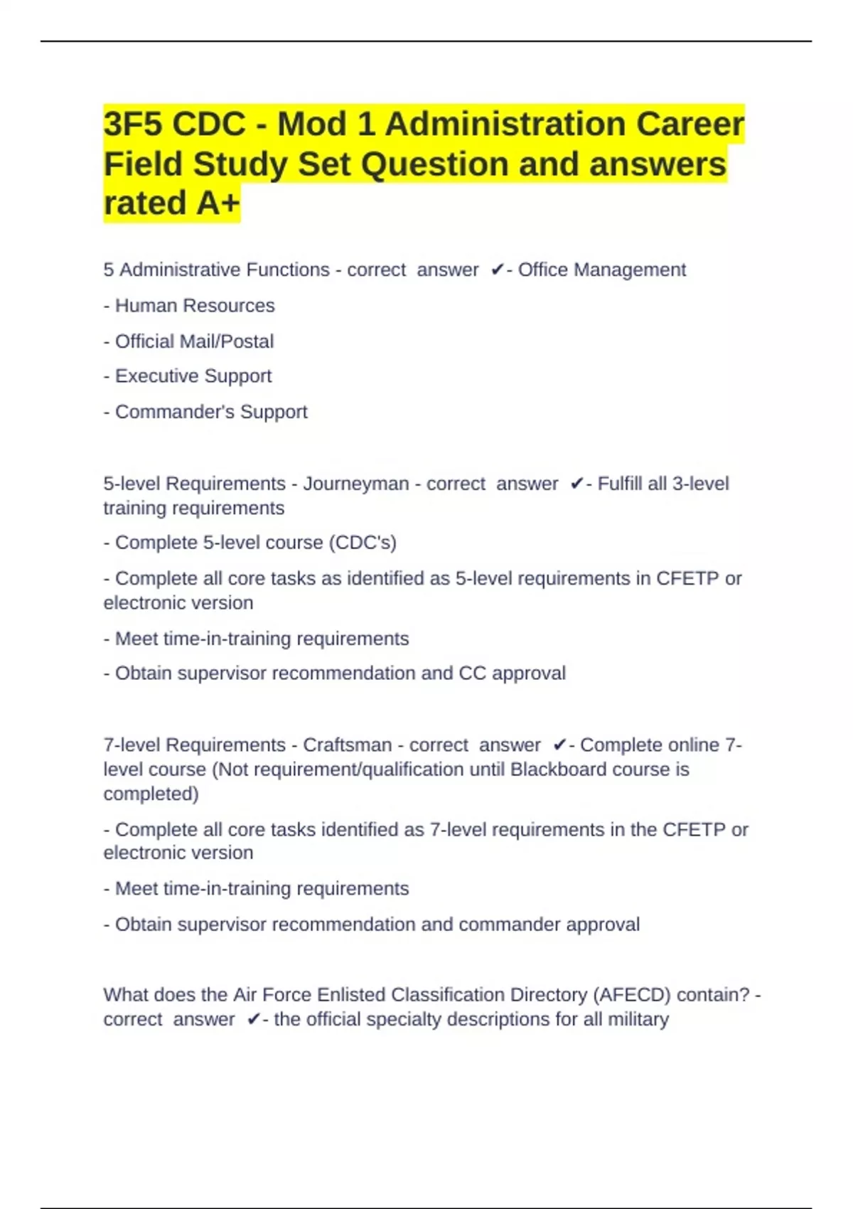 3F5 CDC - Mod 1 Administration Career Field Study Set Question and answers rated A+