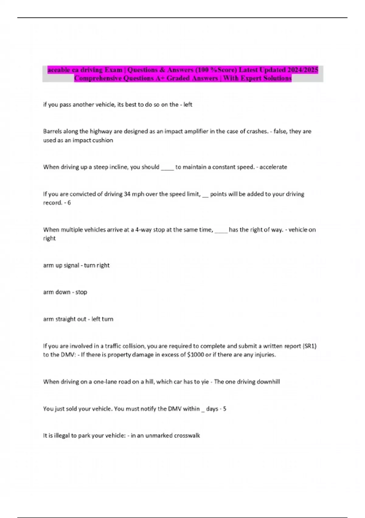 Aceable Level 1 | Questions & Answers 2 Exam (elaborations) Aceable - Drivers Ed | Questions & Answers 3 Exam (elaborations) Aceable Adult Driver s Ed (Assessment Q s) | Questions & Answers 4 Exam (elaborations) Aceable Agent Level 11 Exam Study Guide | Questions & Answers 5 Exam (elaborations)