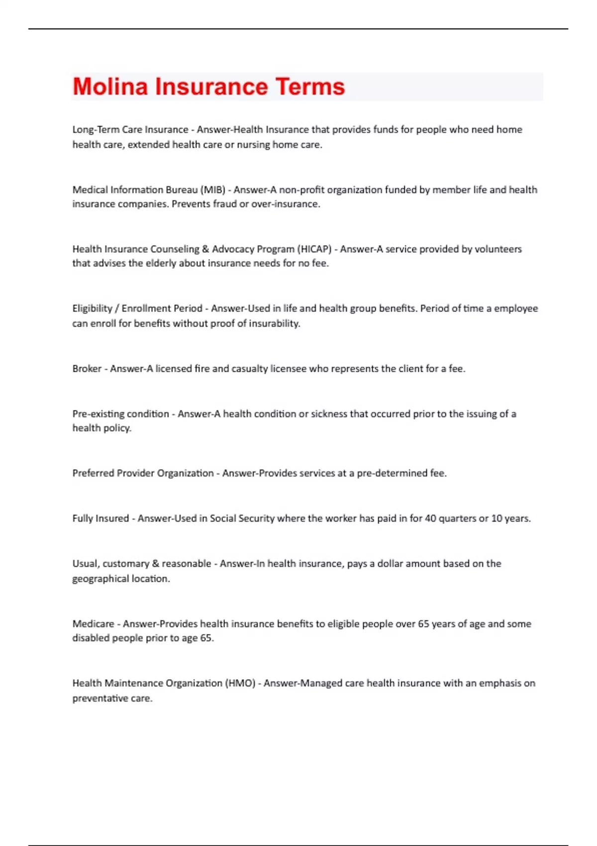 Molina Insurance Terms Questions With 100% Correct Answers.