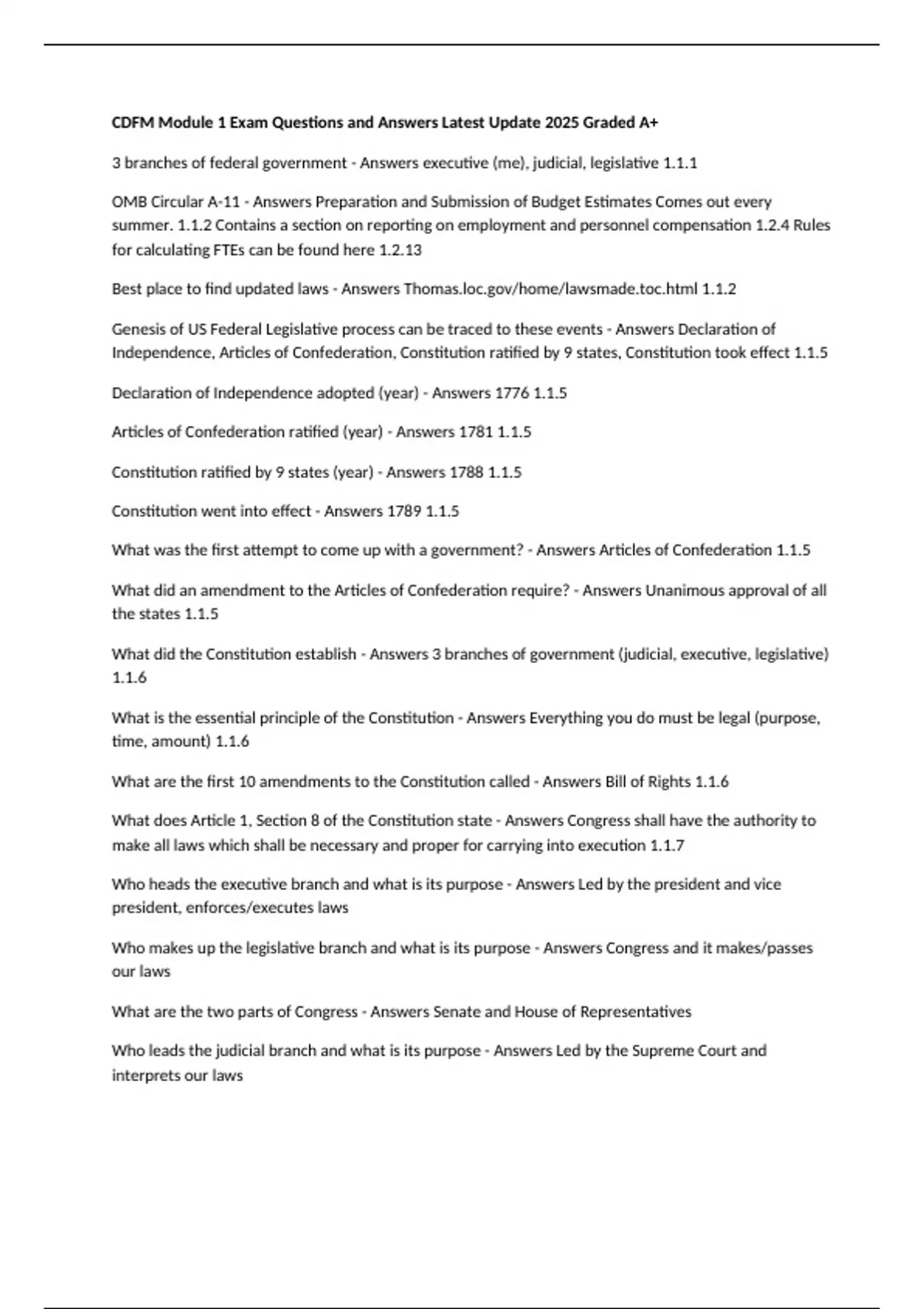 CDFM Module 1 Exam Questions and Answers Latest Update 2025 Graded A+