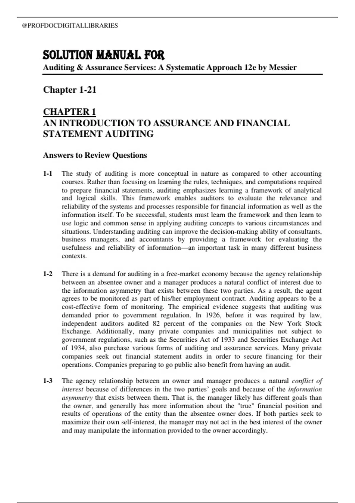 Bundled Solution Manual and Test Bank for Auditing & Assurance Services: A Systematic Approach 12th Edition by William F. Messier, Steven M. Glover and Douglas F. Prawitt |All Chapters Verified| Complete Guide A+