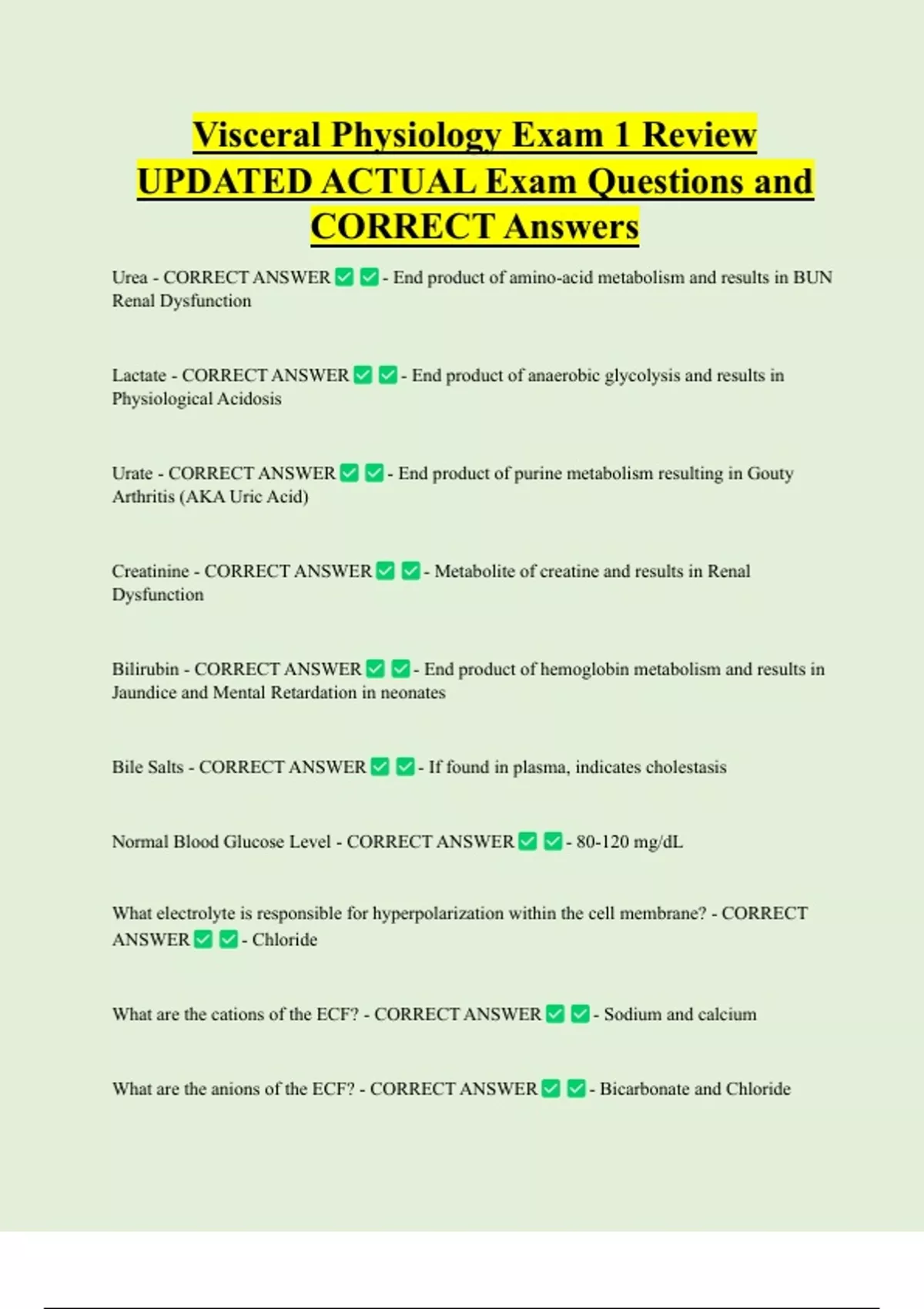 Visceral Physiology Bundled Exam Questions and CORRECT Answers