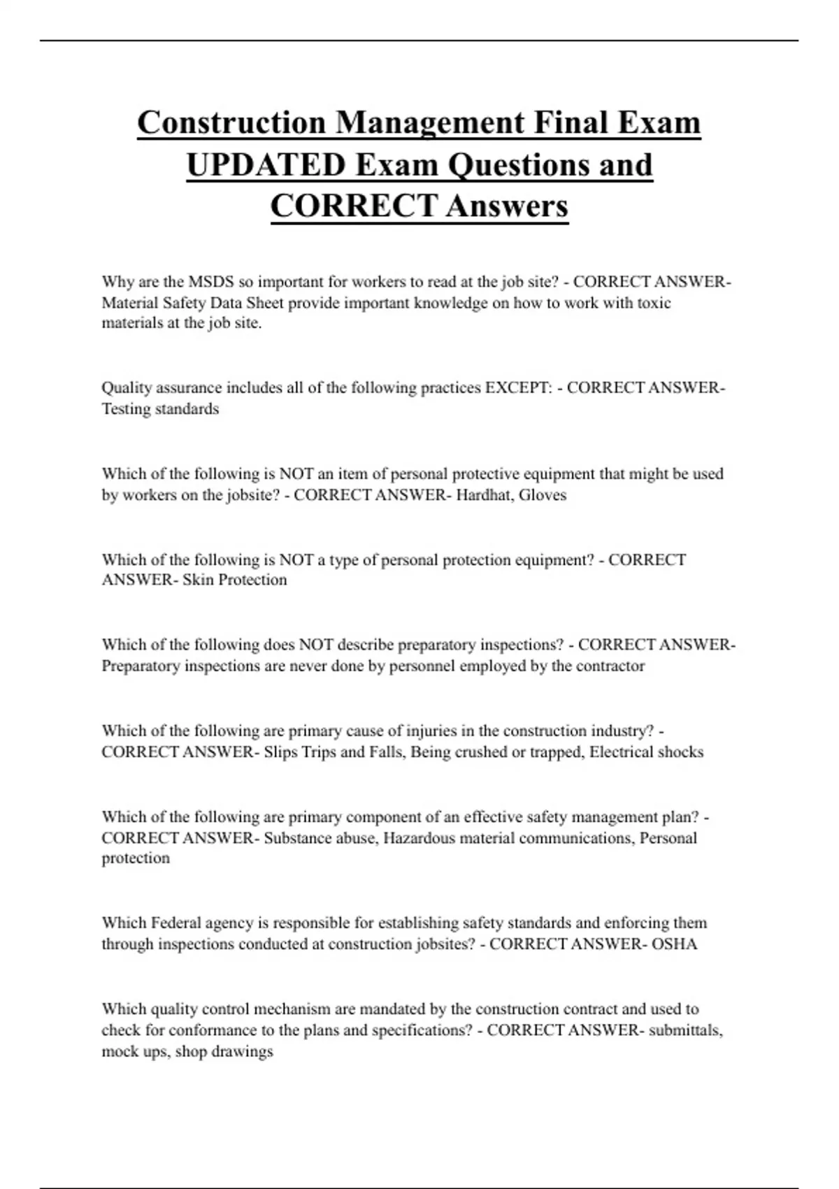 Construction Management Bundled Exam Questions and CORRECT Answers
