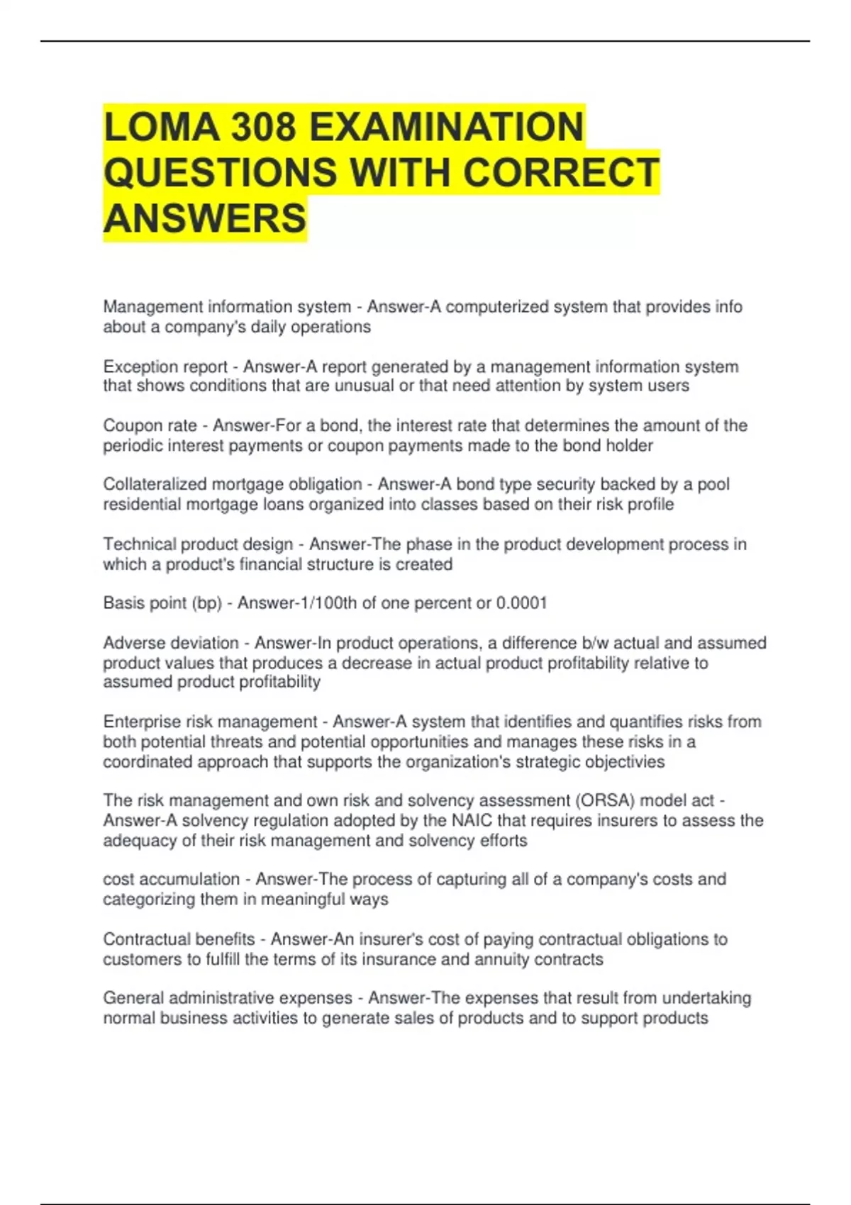 LOMA 308 EXAMINATION QUESTIONS WITH CORRECT ANSWERS 2 Exam (elaborations) LOMA 308 MODULE 2 EXAM REVIEW QUESTIONS WITH COMPLETE SOLUTIONS 3 Exam (elaborations) LOMA 308 MODULE 1 EXAM QUESTIONS WITH VERIFIED ANSWERS 4 Exam (elaborations) LOMA 308 MODULE 3 EXAM QUESTIONS WITH CORRECT ANSWERS 5 Exam (elaborations) LOMA 3 MODULE 1-3 EXAM QUESTIONS