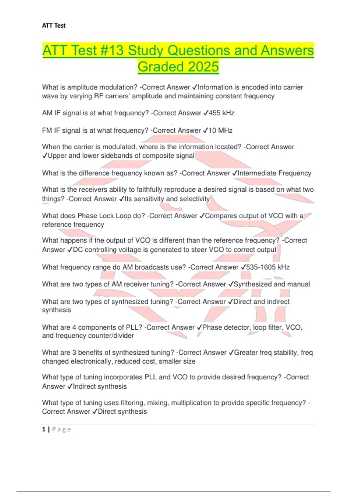 Complete Package Deal For ATT TEST 10 ACTUAL EXAM COMPLETE QUESTIONS AND CORRECT DETAILED VERIFIED ANSWERS ALREADY GRADED A+2025