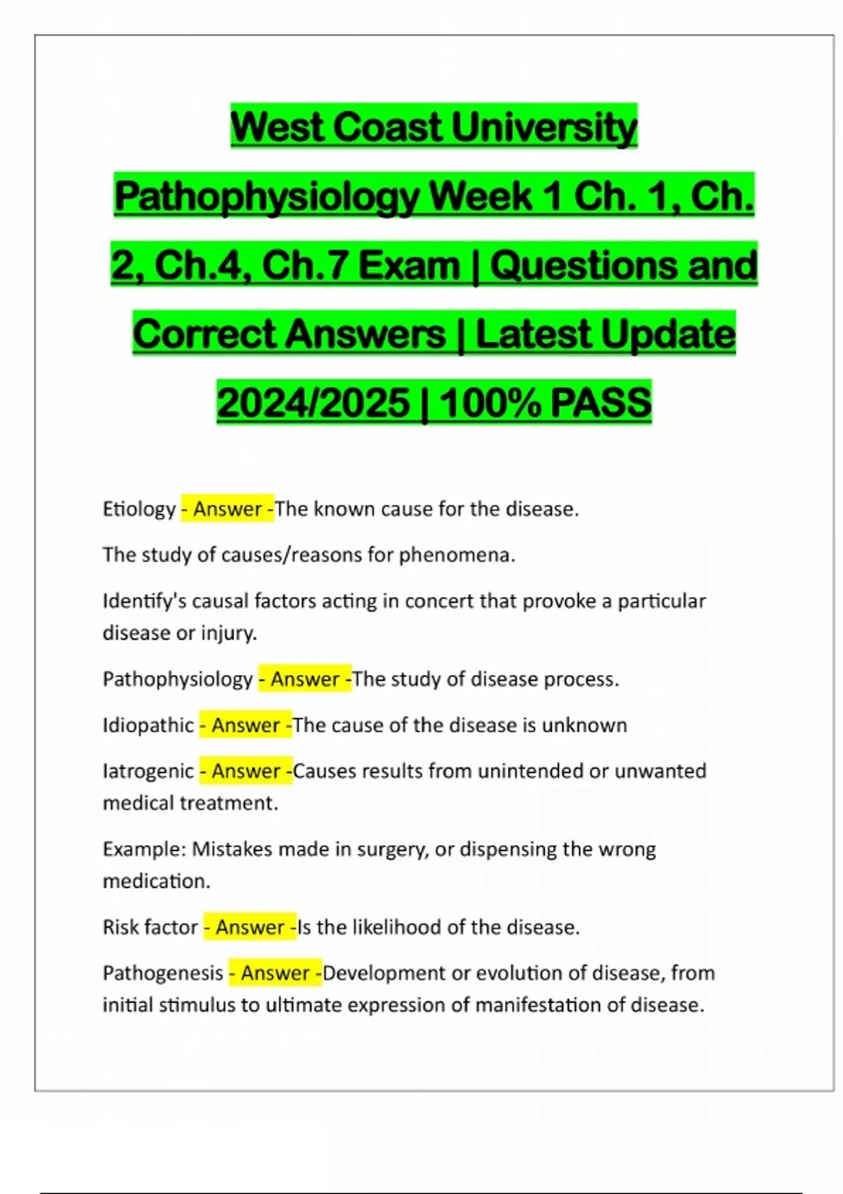 WCU PATHO BUNDLED EXAMS | QUESTIONS AND CORRECT ANSWERS | LATEST UPDATE 2024/2025