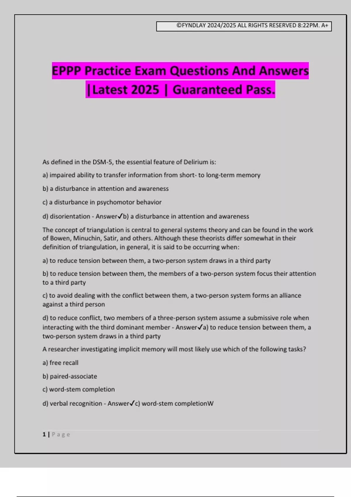 EPPP Practice Exam Questions And Answers |Latest 2025 | Guaranteed Pass.