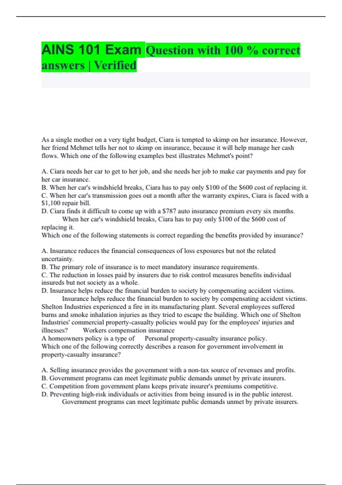 PACKAGE DEAL >> AINS 101 EXAMS|| COMPLETE GUIDE|| 2025| GRADED A+