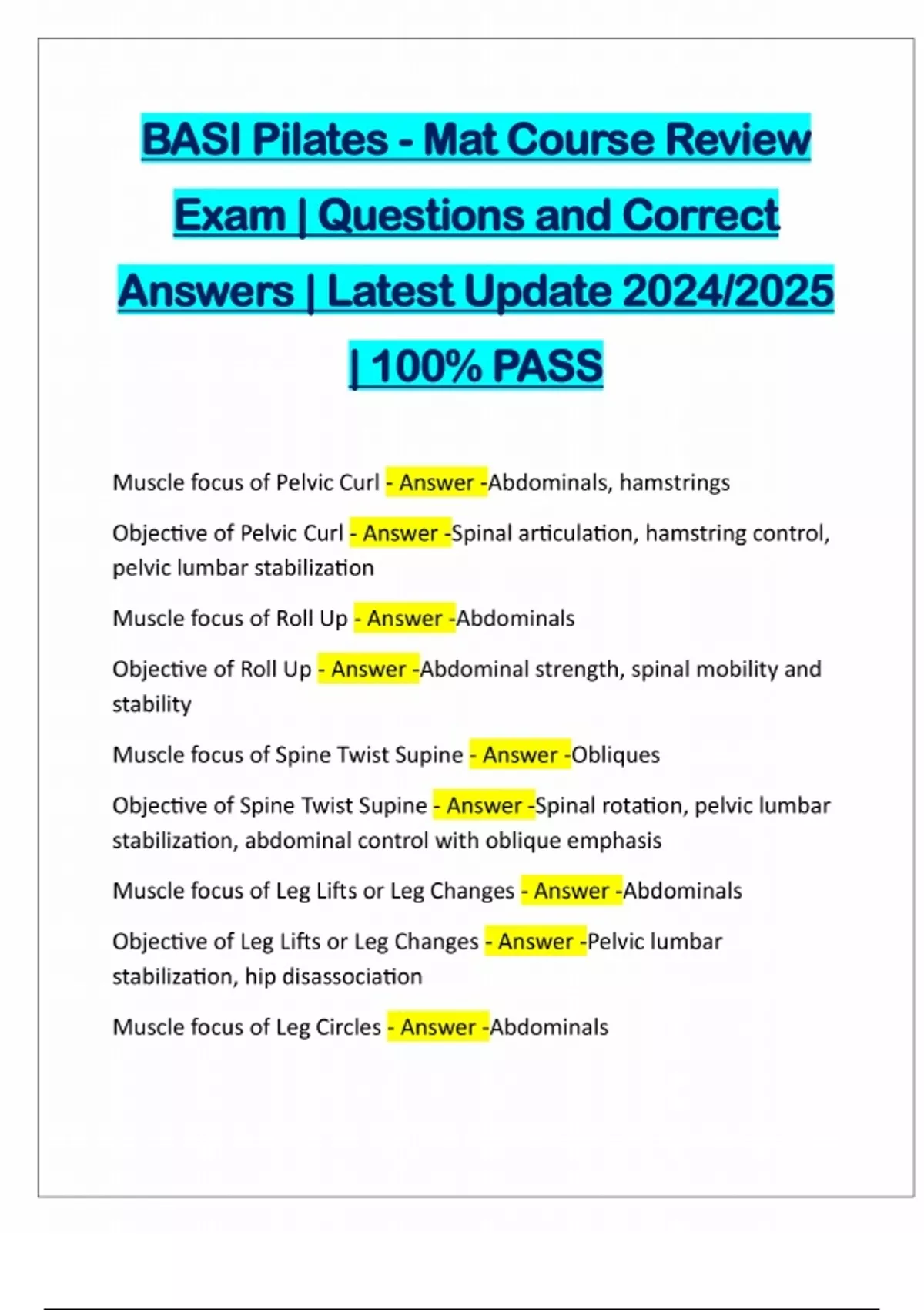 BASI PILATES BUNDLED EXAMS | QUESTIONS AND CORRECT ANSWERS | LATEST UPDATE 2024/2025