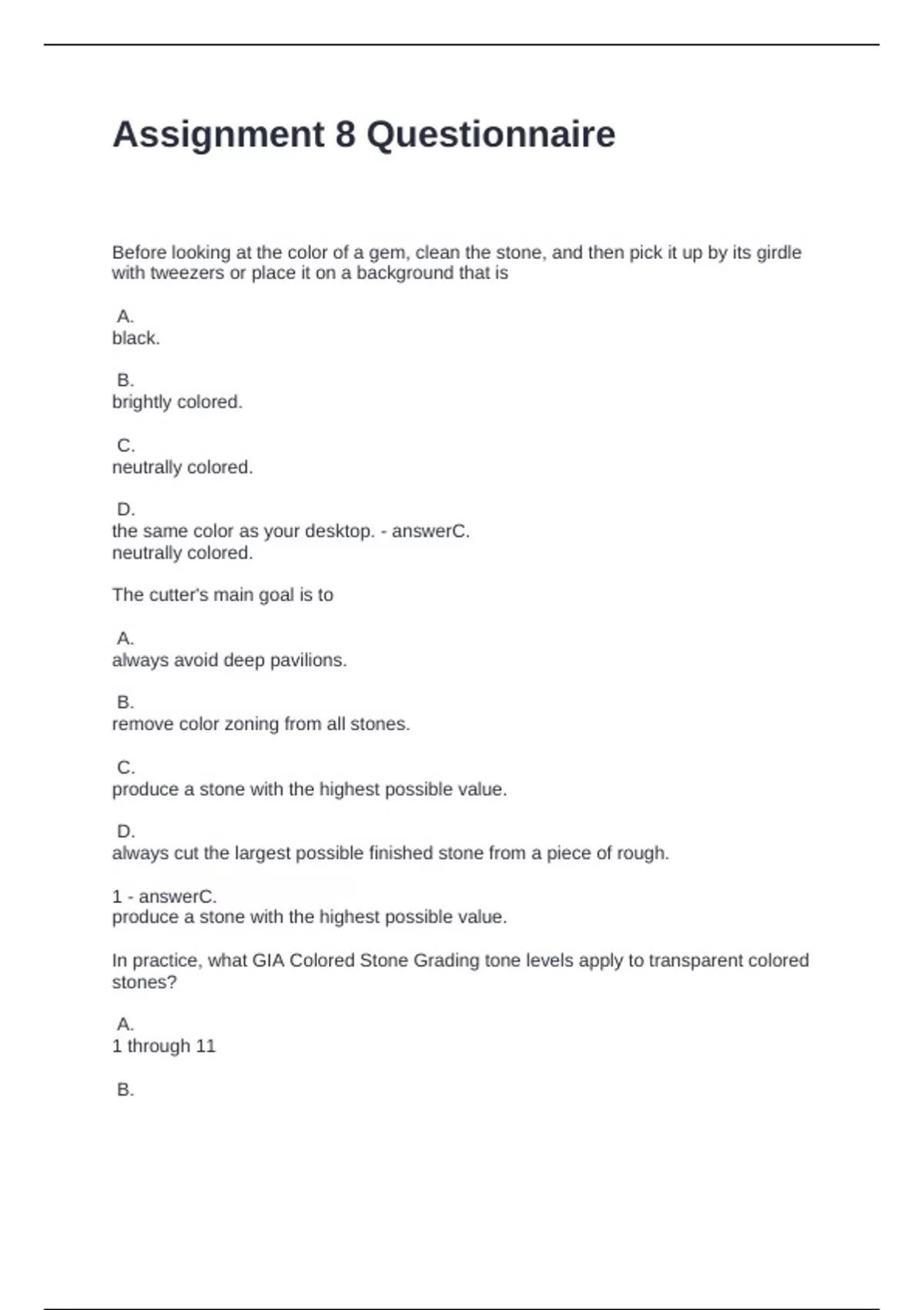 Exam (elaborations) Gem Identification 5 Questions and Answers Rated A+ Exam (elaborations) gem 220 colored stones assignment 8 questions and answers fully solved Exam (elaborations) Final exam-colored stones Questions and Answers 100% Solved Exam (elaborations) CSA7- The Colored Stone Market Questions and Answers 100% Solved Exam (elabora