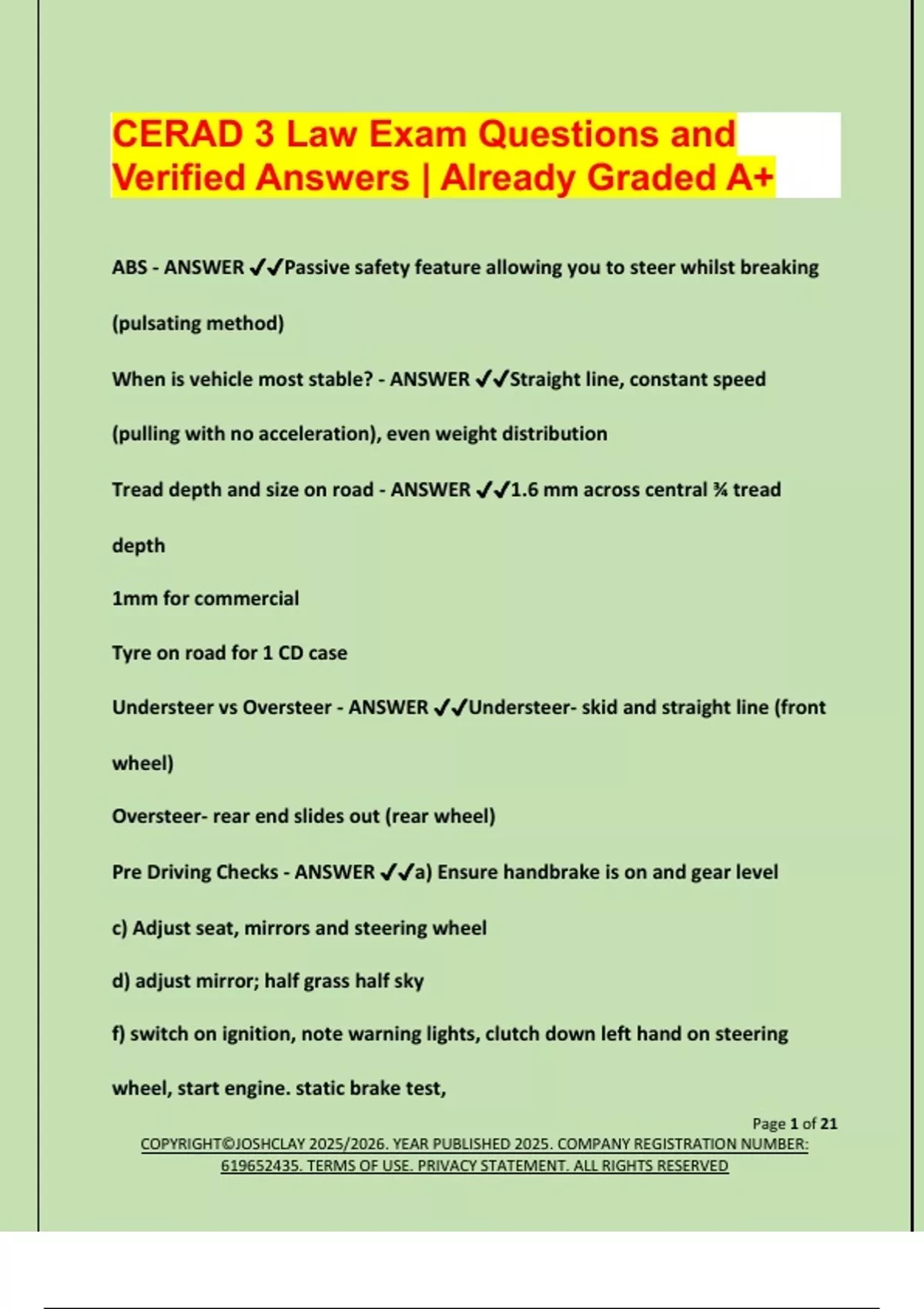 CERAD 3 Law Exam Questions and Verified Answers | Already Graded A+