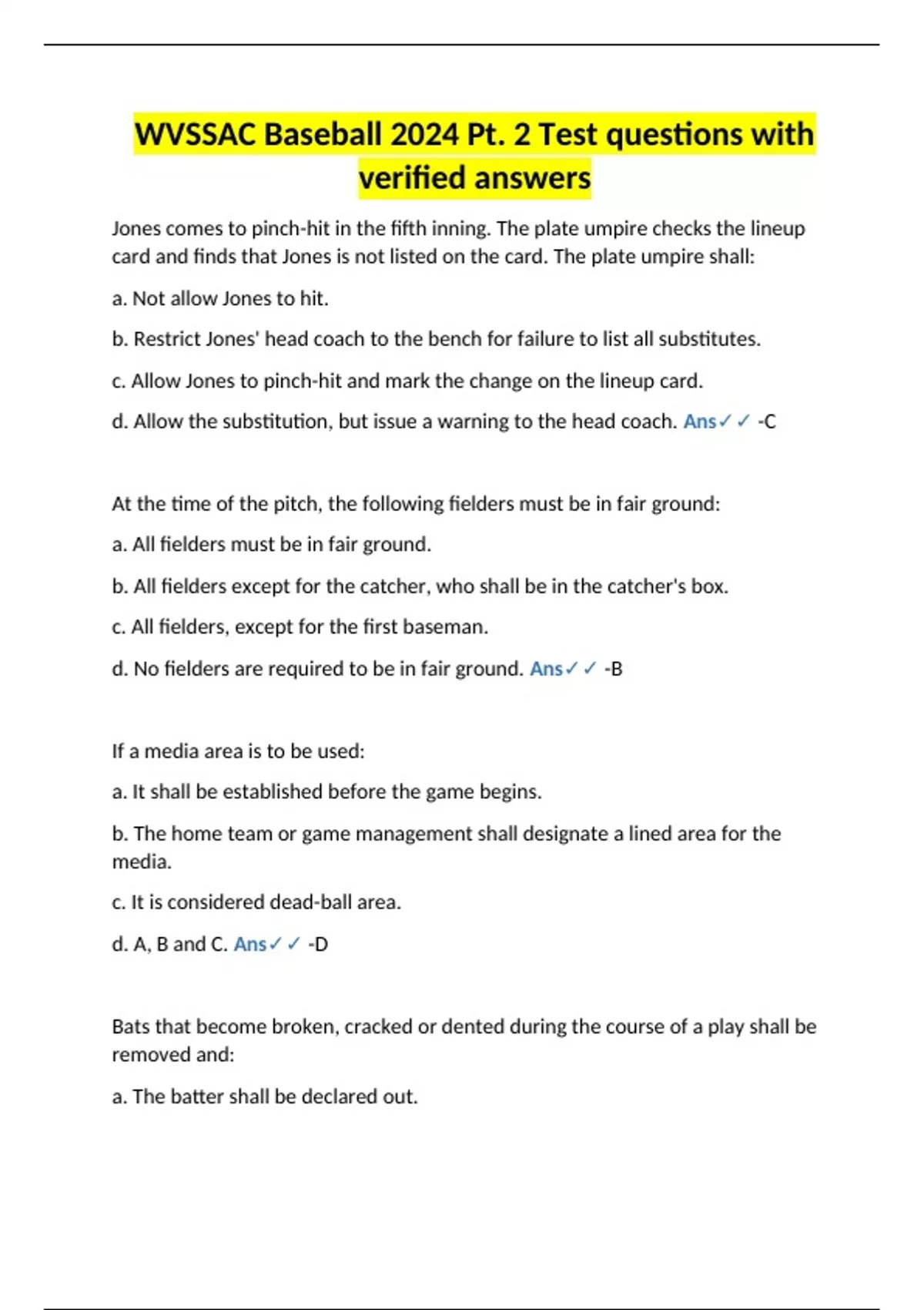 WVSSAC - NFHS Baseball Tests Bundle Set