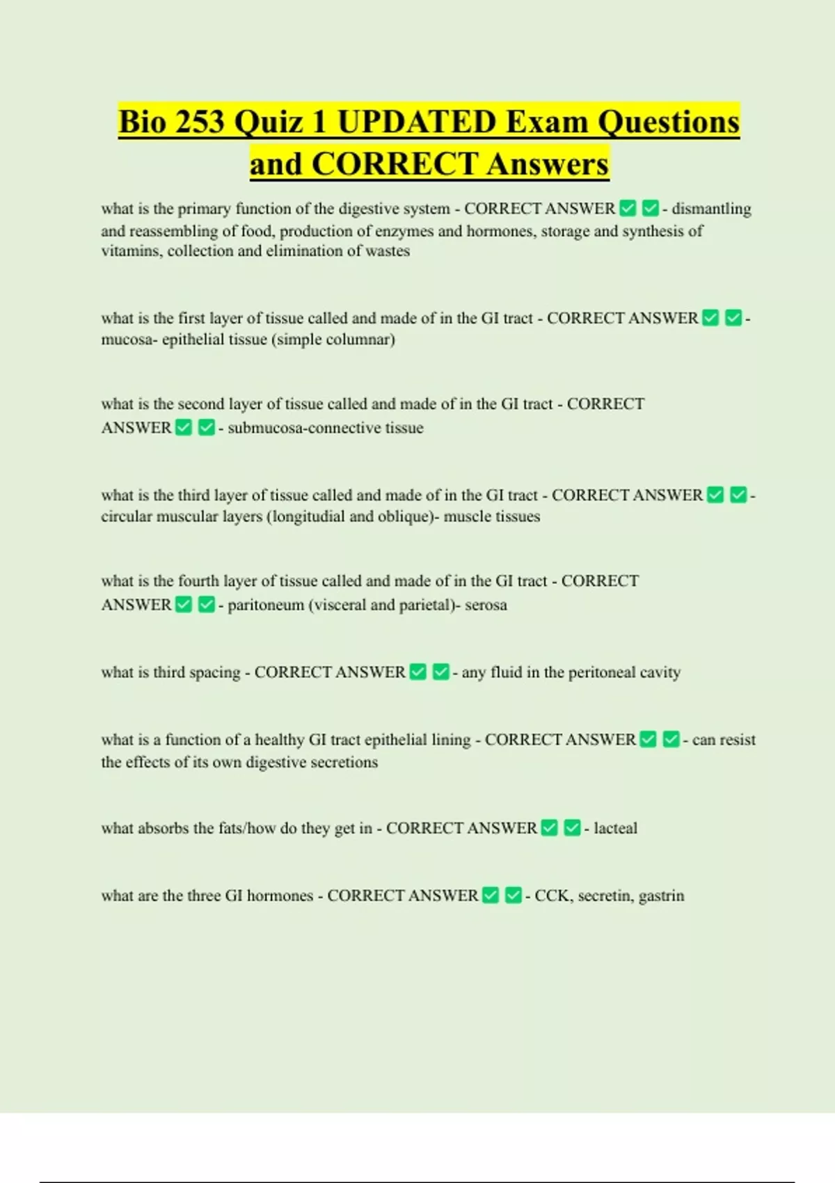 Bio 253 Bundled Exam Questions and CORRECT Answers