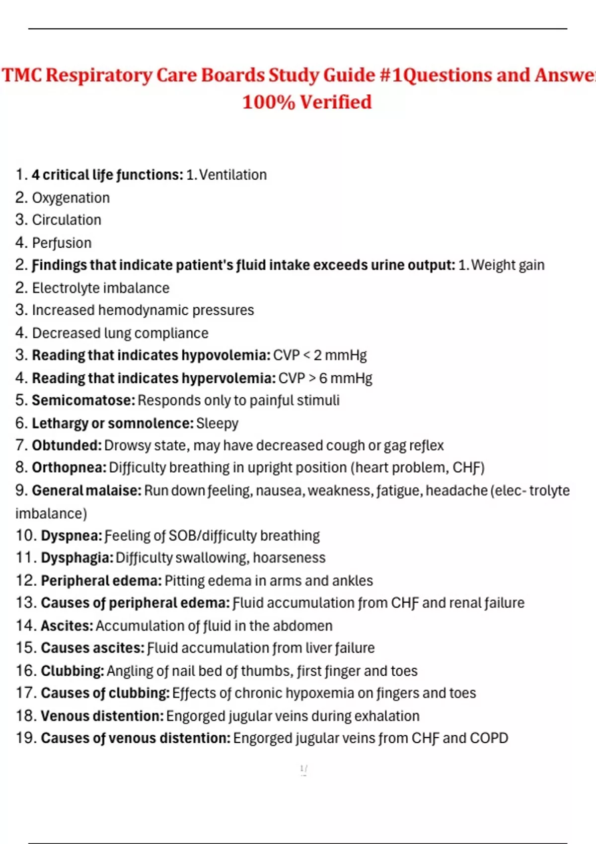 TMC Practice Questions and Verified Answers (100% Pass) NBRC Mock TMC Exam Review Questions and Rationalized Answers 100% Graded A NBRC TMC Practice Questions and Verified Rationalized Answers 100% TMC Respiratory Care Boards Study Guide #1Questions and Answers 100% Verified TMC Practice Exam Test Questions and Answers (Multiple Choice Exam) 100%