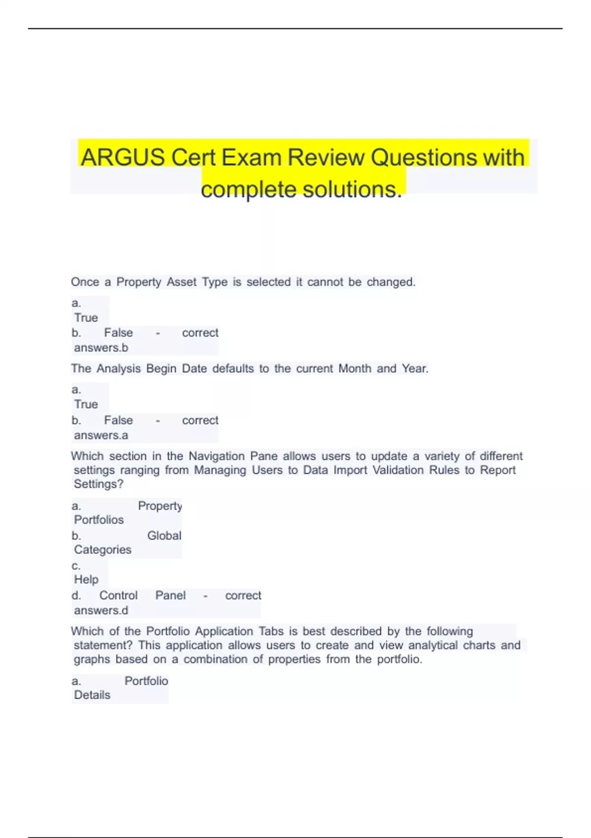 ARGUS Enterprise Certification Exam Review questions and answers latest top score.