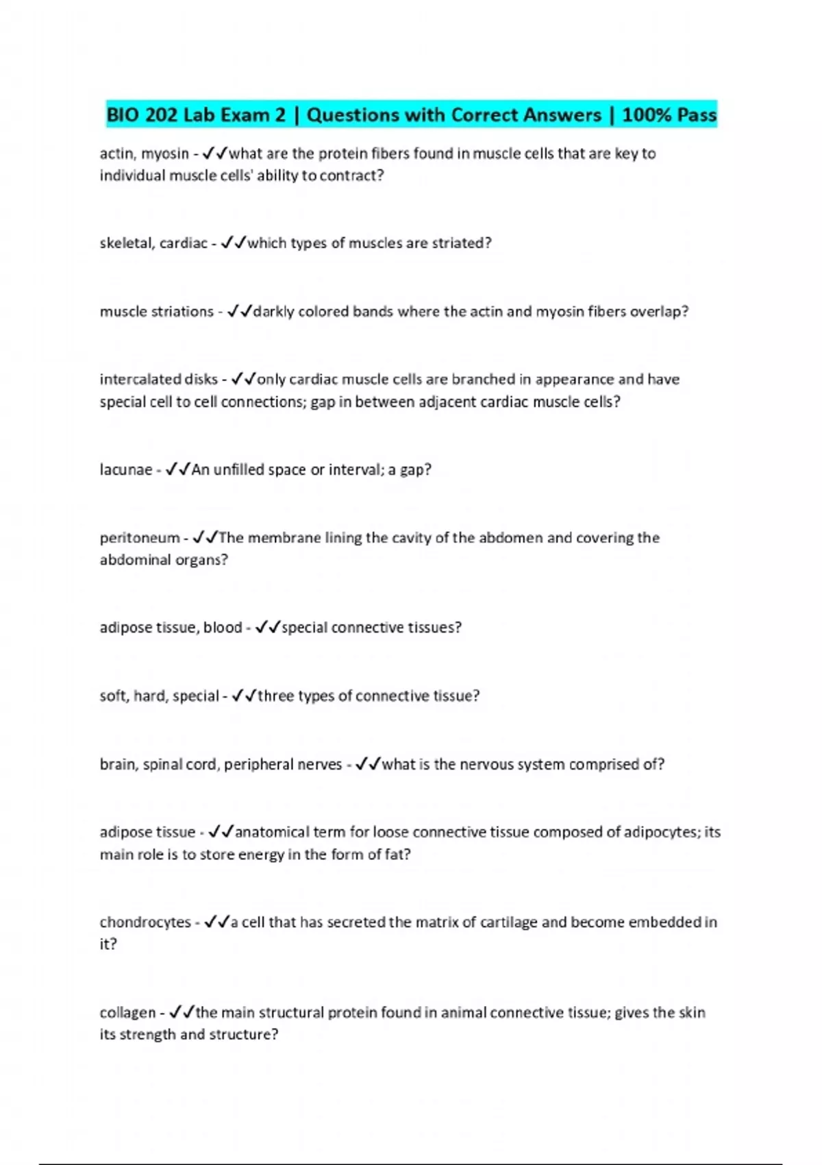 EXAMS BUNDLE:::: BIO 202 | Questions with Correct Answers | COMPLETE AND ACCURATE