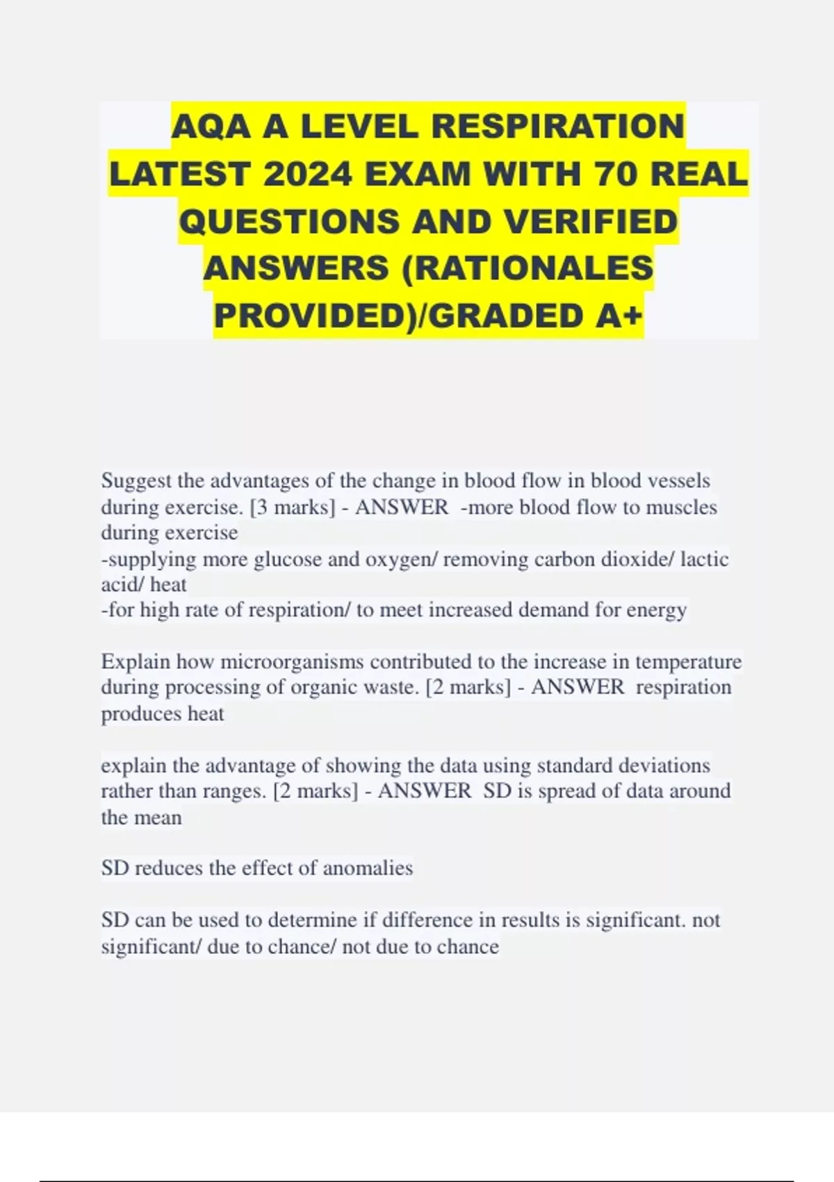 AQA A LEVEL RESPIRATION LATEST 2024 EXAM WITH 70 REAL QUESTIONS AND VERIFIED ANSWERS (RATIONALES PROVIDED)/GRADED A+