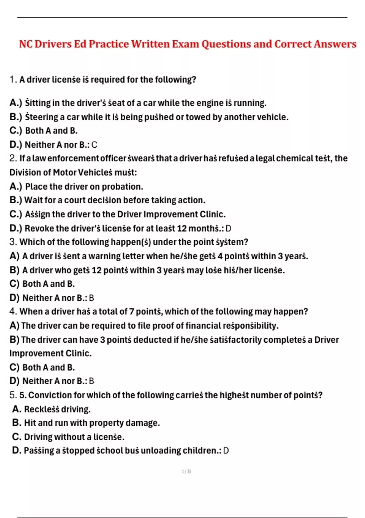 Drivers ed practice test Questions and Verified Answers 100% Graded A Driver s Ed Exam Review Questions and Answers 100% Guaranteed Pass Drivers Ed permit test study guide Questions and Answers 100% Pass Score NC drivers ed 100 questions and 100% Verified Answers NC Drivers Ed Practice Written Exam Questions and Correct Answers