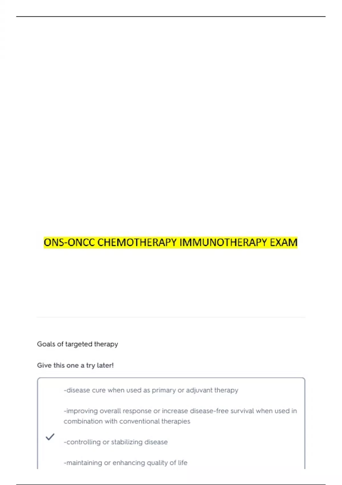 ONS-ONCC CHEMOTHERAPY IMMUNOTHERAPY CERTIFICATE EXAM (A+ GRADED 100% VERIFIED).