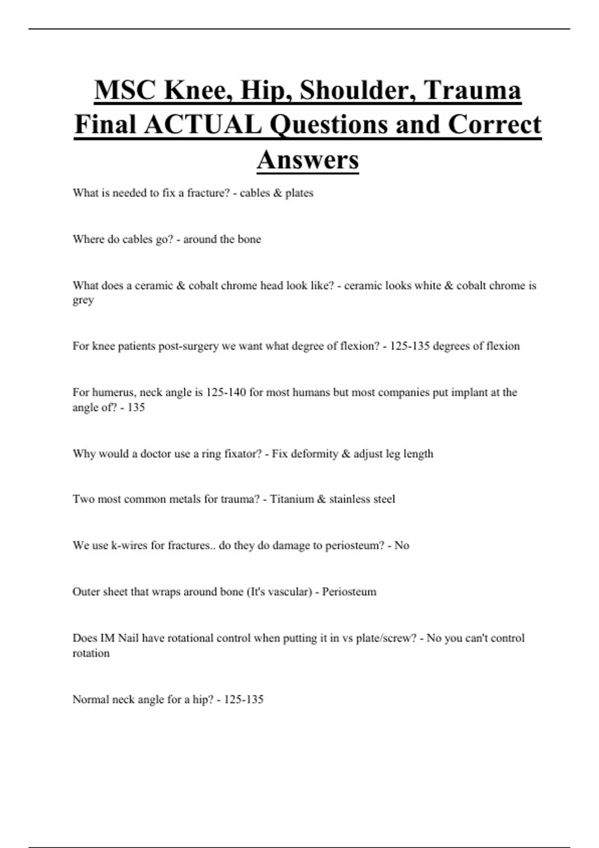 MSC Knee, Hip, Shoulder, Trauma Final ACTUAL Questions